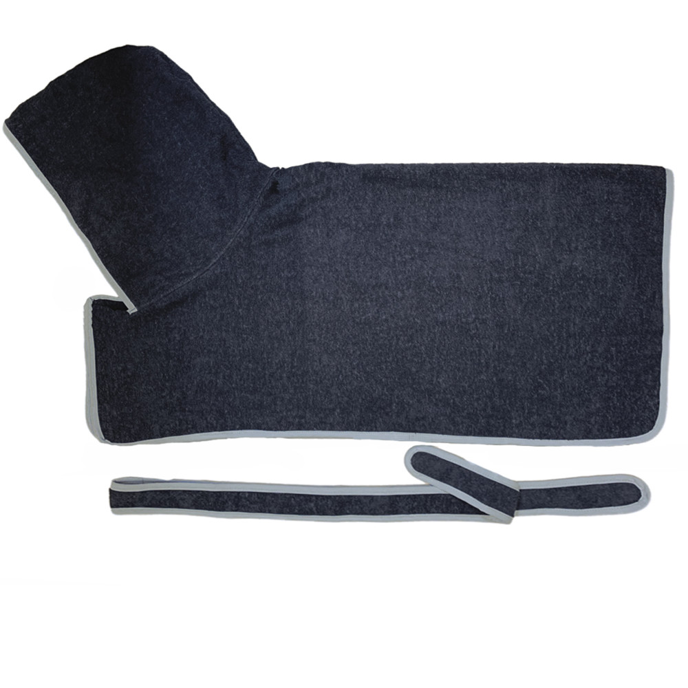 Αυτό το υπέροχο μπουρνούζι για τα αγαπημένα σας πρόσωπα δεν είναι μόνο όμορφο στην εμφάνιση, αλλά εντυπωσιάζει επίσης με την υψηλή και γρήγορη απορρόφηση υγρασίας. Με αυτή τη ρόμπα απλά την τυλίγετε μετά από μια βροχερή βόλτα, ο σκύλος στεγνώνει πολύ πιο γρήγορα, το σπίτι σας προστατεύεται και ο σκύλος αισθάνεται καλά. Το απορροφητικό βαμβάκι εξασφαλίζει άνετη εφαρμογή. Με velcro στο λαιμό και λουράκι, το μπουρνούζι μπορεί να φορεθεί γρήγορα. Τα σκυλιά σας θα το λατρέψουν!! Το μπουρνούζι είναι εύκολο στη φροντίδα και μπορεί απλά να πλυθεί στους 40°C και στη συνέχεια να τοποθετηθεί στο στεγνωτήριο.