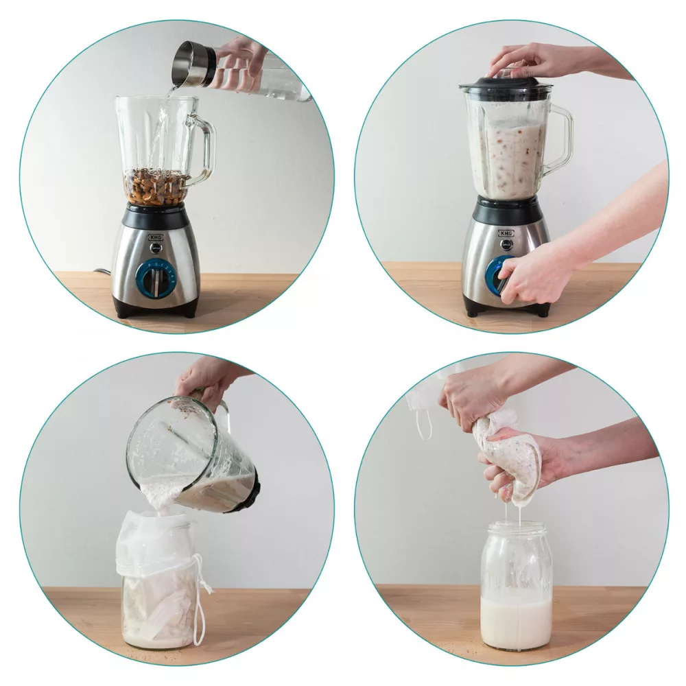 Η σακούλα μπορεί επίσης να χρησιμοποιηθεί για την παρασκευή βουτύρου ή τυριού κότατζ, για να πιέσετε τόφου ή για να φυτρώσουν ξηρούς καρπούς και σπόρους για υγιεινά σνακ. Μπορείτε ακόμη να χρησιμοποιήσετε πολτό γάλακτος αμυγδάλου για να φτιάξετε αλεύρι ή να προσθέσετε σε κρούστες πίτας και μπισκότα!