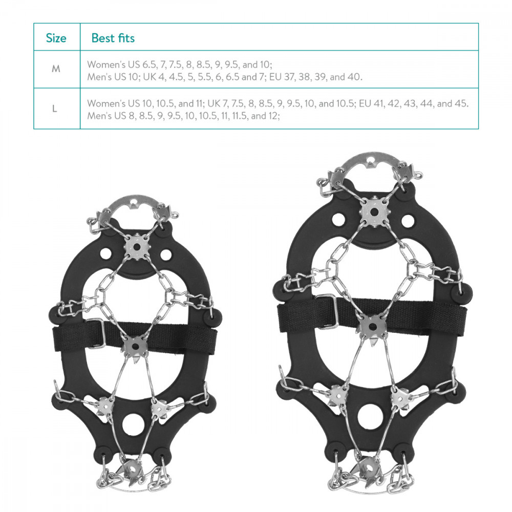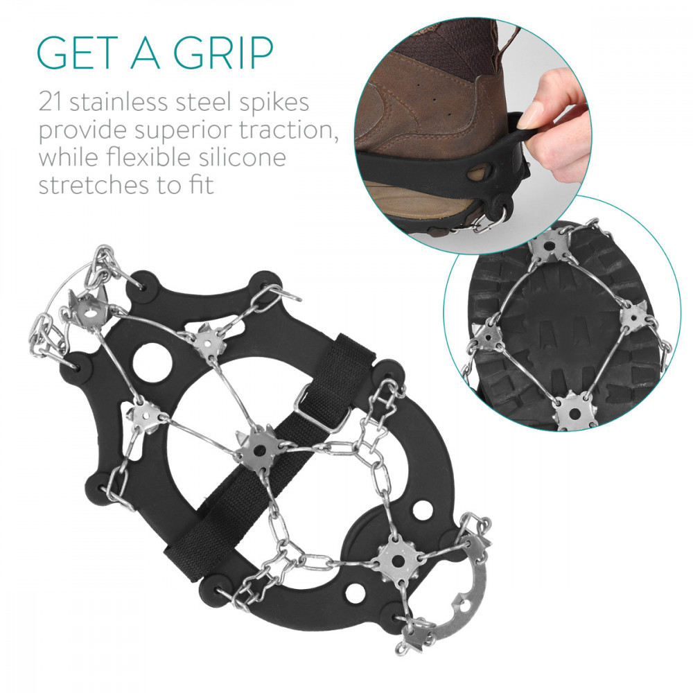 Προετοιμαστείτε για το χειμώνα με αιχμές έλξης πάγου από το Navaris. Κατασκευασμένα από ελαστική σιλικόνη με ατσάλινες μύτες, αυτά τα κραμπόν πάγου αποτελούν ιδανική λύση για περπάτημα σε ολισθηρές συνθήκες.
