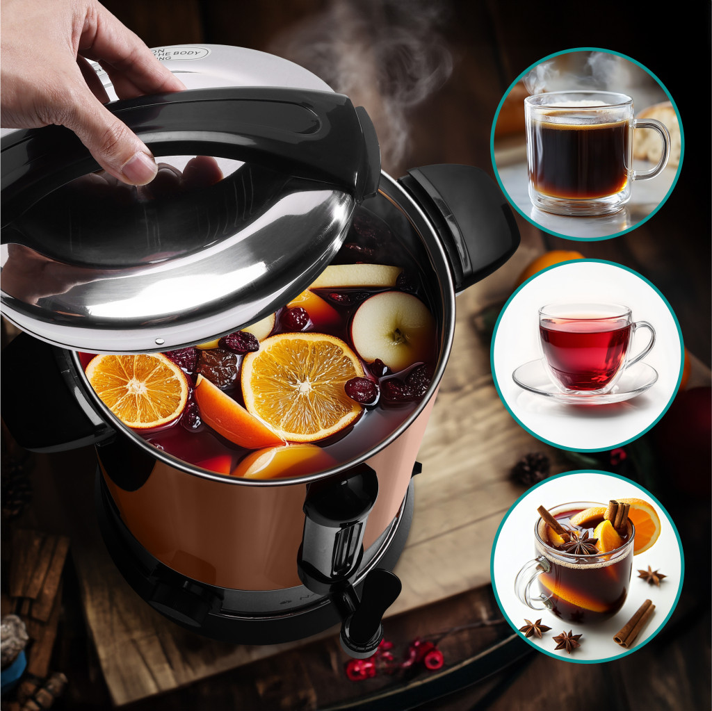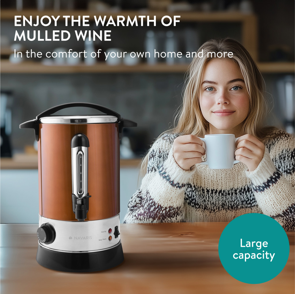 Fierbator vin fiert si apa calda Navaris, 6.8 L, 950 W, utilizare catering, auriu, metal
