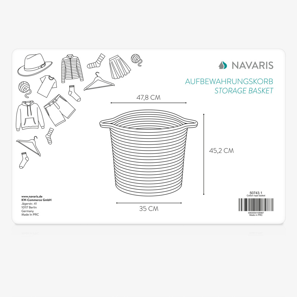 Οργανώστε τα πράγματά σας και δώστε στον εαυτό σας αυτόν τον επιπλέον αποθηκευτικό χώρο σε οποιοδήποτε δωμάτιο του σπιτιού, είτε πρόκειται για κουζίνα, μπάνιο, σαλόνι ή κρεβατοκάμαρα, με αυτό το μαλακό βαμβακερό καλάθι από σχοινί της Navaris.