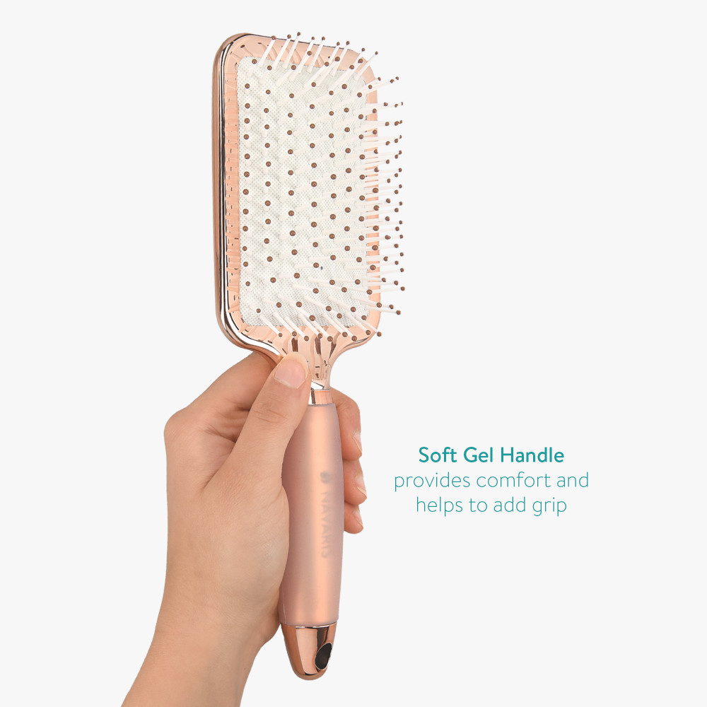 Αντί για μια σκληρή, πλαστική λαβή, κάθε βούρτσα σε αυτό το σετ 3 βούρτσες μαλλιών από τη Navaris, διαθέτει μαλακή λαβή gel που όχι μόνο παρέχει άνεση, αλλά βοηθά και στην πρόσφυση. Έτσι, θα είστε σίγουροι ότι κρατάτε σταθερά τη βούρτσα όταν αντιμετωπίζετε σκληρούς κόμπους, ετοιμαστείτε μετά από ένα ντους ή αφιερώστε λίγο χρόνο πριν βγείτε για να φορμάρετε τα μαλλιά σας. μαλλιά.