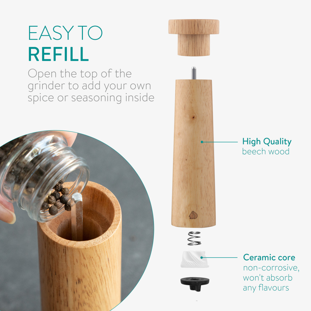 Set rasnite sare si piper Navaris, mecanism ceramic, 20.5x5.5 cm, maro, lemn