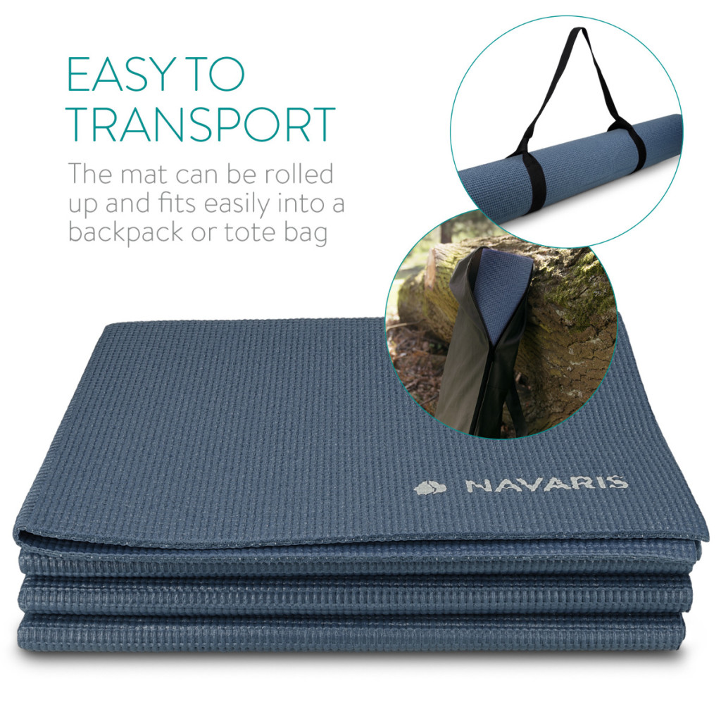 Saltea yoga pliabila Navaris, 173x61x0.4 cm, textura antiderapanta, calatorii, negru, PVC