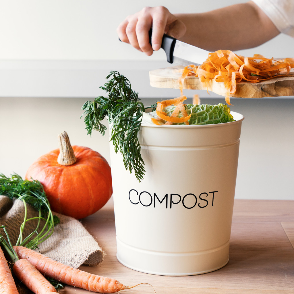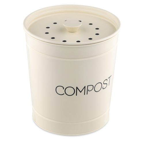 Cos de compost metalic Navaris, 3 L, capac cu filtru, 3 filtre incluse, pentru bucatarie, crem, metal