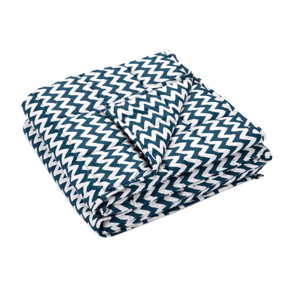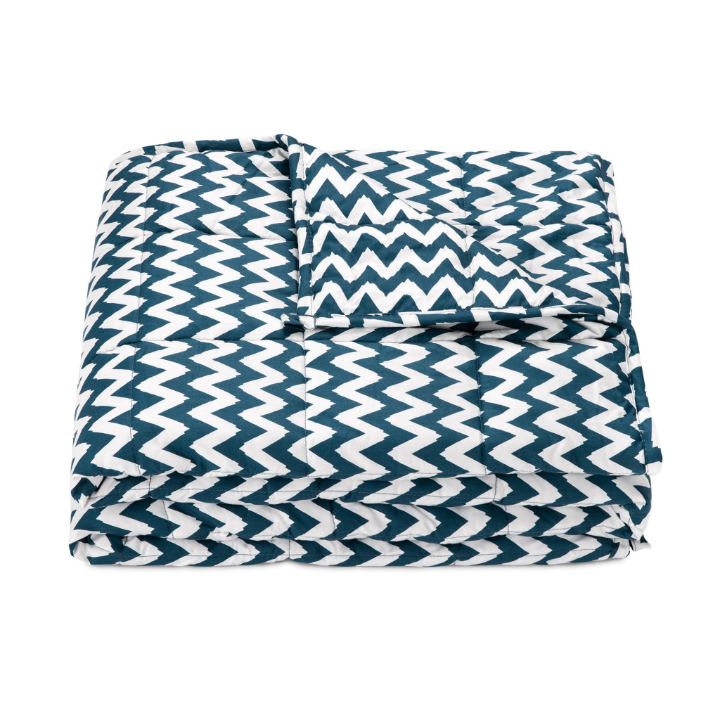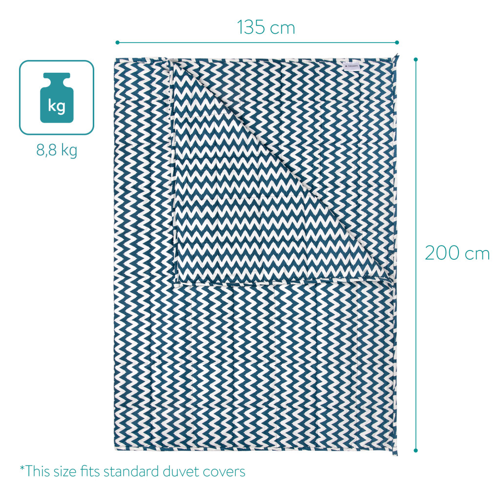 Patura grea Navaris, 135x200 cm, 8.8 kg, model zig-zag, pentru somn profund, gri, poliester/bumbac