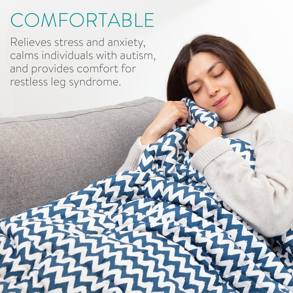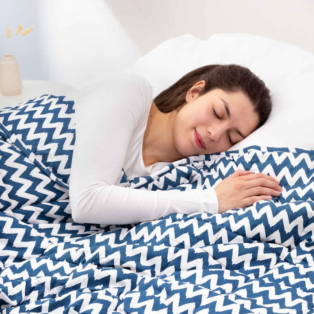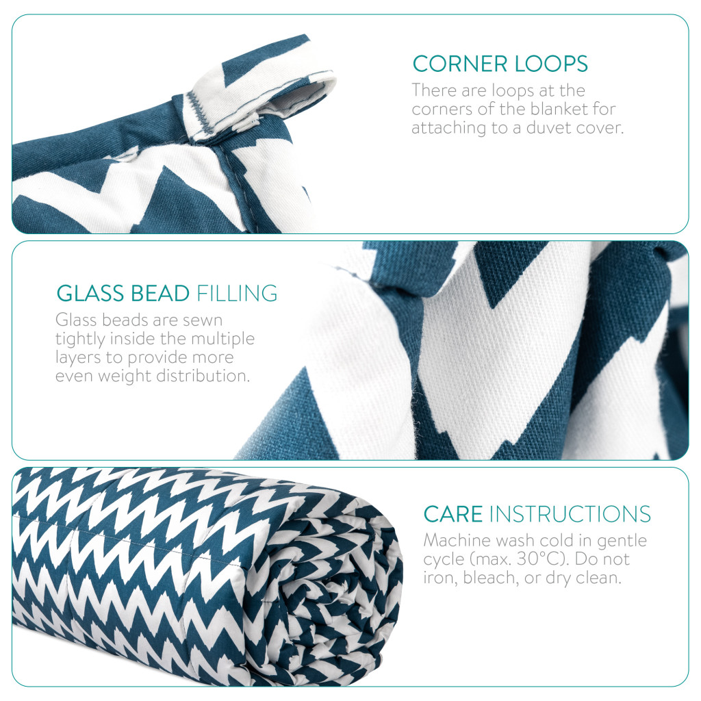 Patura grea Navaris, 135x200 cm, 8.8 kg, model zig-zag, pentru somn profund, gri, poliester/bumbac