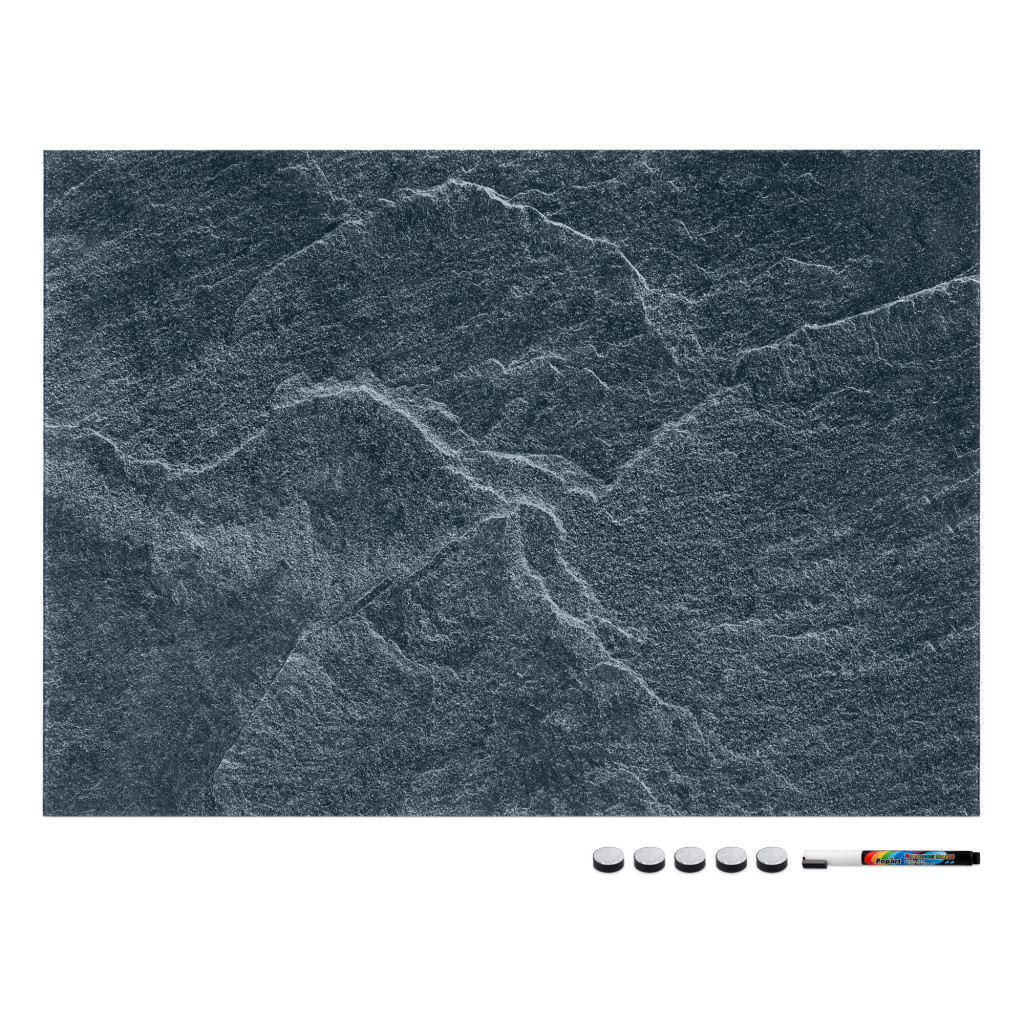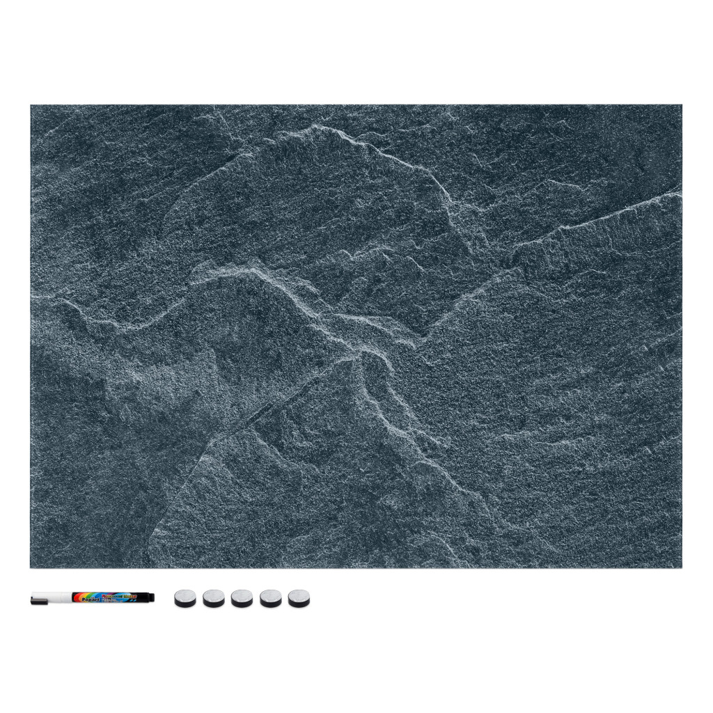 Tabla magnetica Navaris, design piatra neagra, 70x50 cm, planificare si notite, negru, MDF/otel