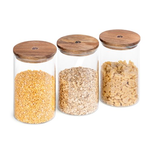 Η χωρητικότητα των 1000 ml είναι ιδανική για αποθήκευση μπαχαρικών, τσαγιού, ζάχαρης, καφέ ή ακόμα και χειροποίητων προϊόντων και διατηρεί τη φρεσκάδα των ξύλινων προϊόντων. Ο διαφανής σχεδιασμός των βάζων σάς επιτρέπει να βλέπετε γρήγορα τι υπάρχει μέσα, εξοικονομώντας χρόνο όταν ψάχνετε για ένα συγκεκριμένο συστατικό ή αντικείμενο. Κάθε βάζο συνοδεύεται από ένα ασφαλές καπάκι που βοηθά στην προστασία του περιεχομένου από την υγρασία και τη σκόνη.