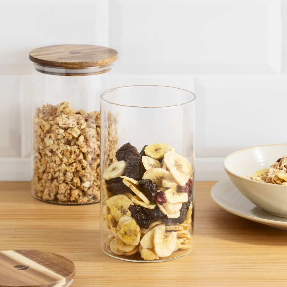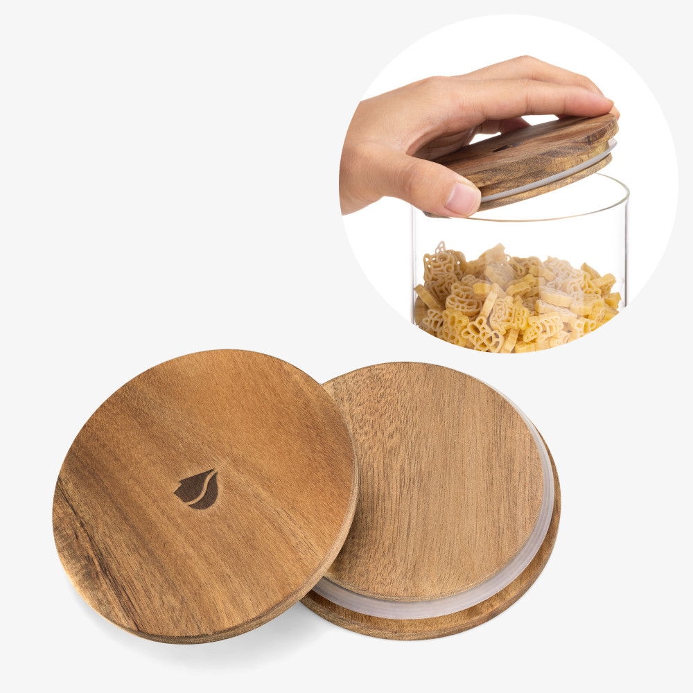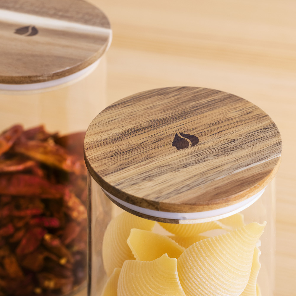 Κατασκευασμένο από γυαλί με καπάκια από ξύλο ακακίας και σφραγίδες σιλικόνης. Η εναλλαγή από πλαστικό δεν ήταν ποτέ πιο εύκολη.