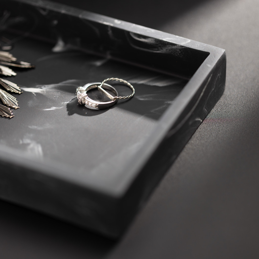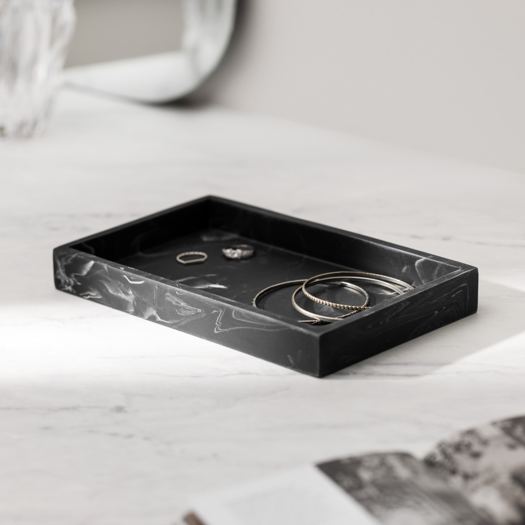 Tavita decorativa Navaris pentru bijuterii, 23.5x12.5x2.6 cm, negru, rasina
