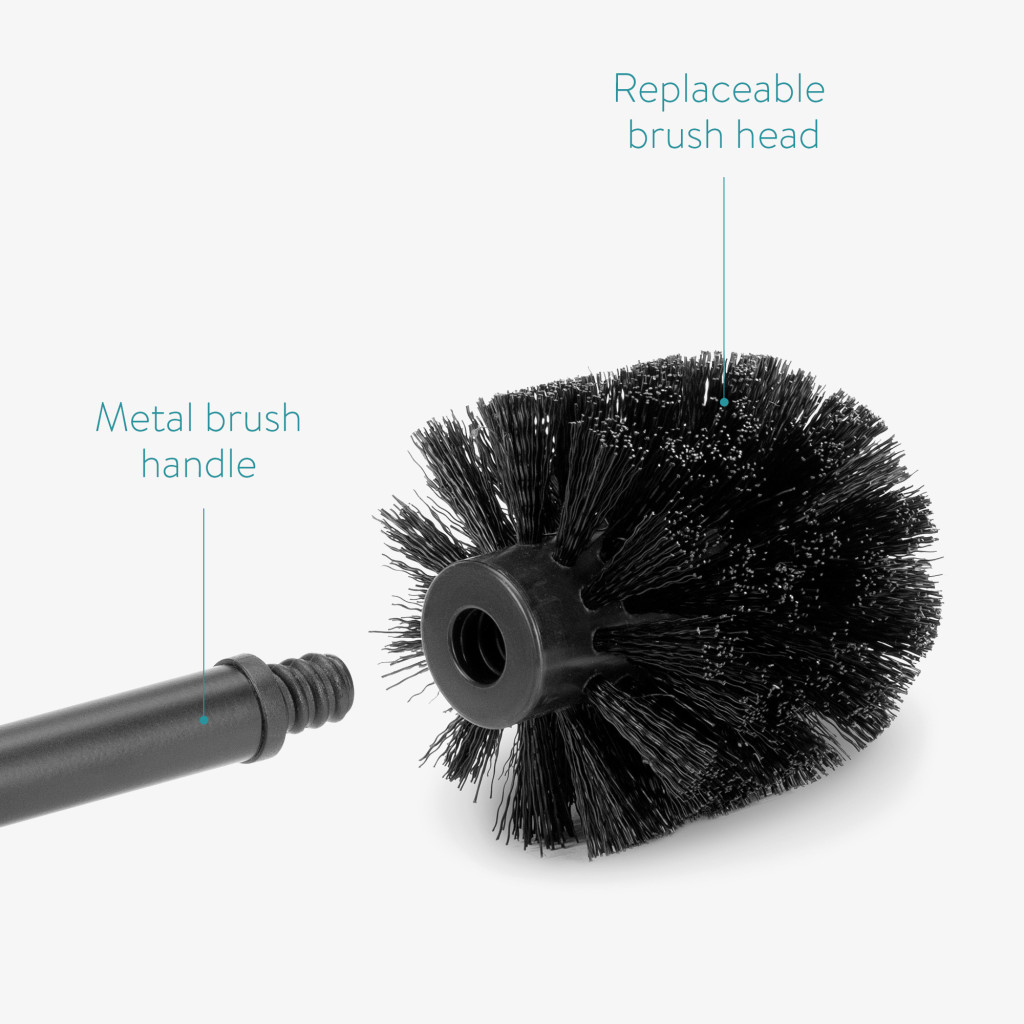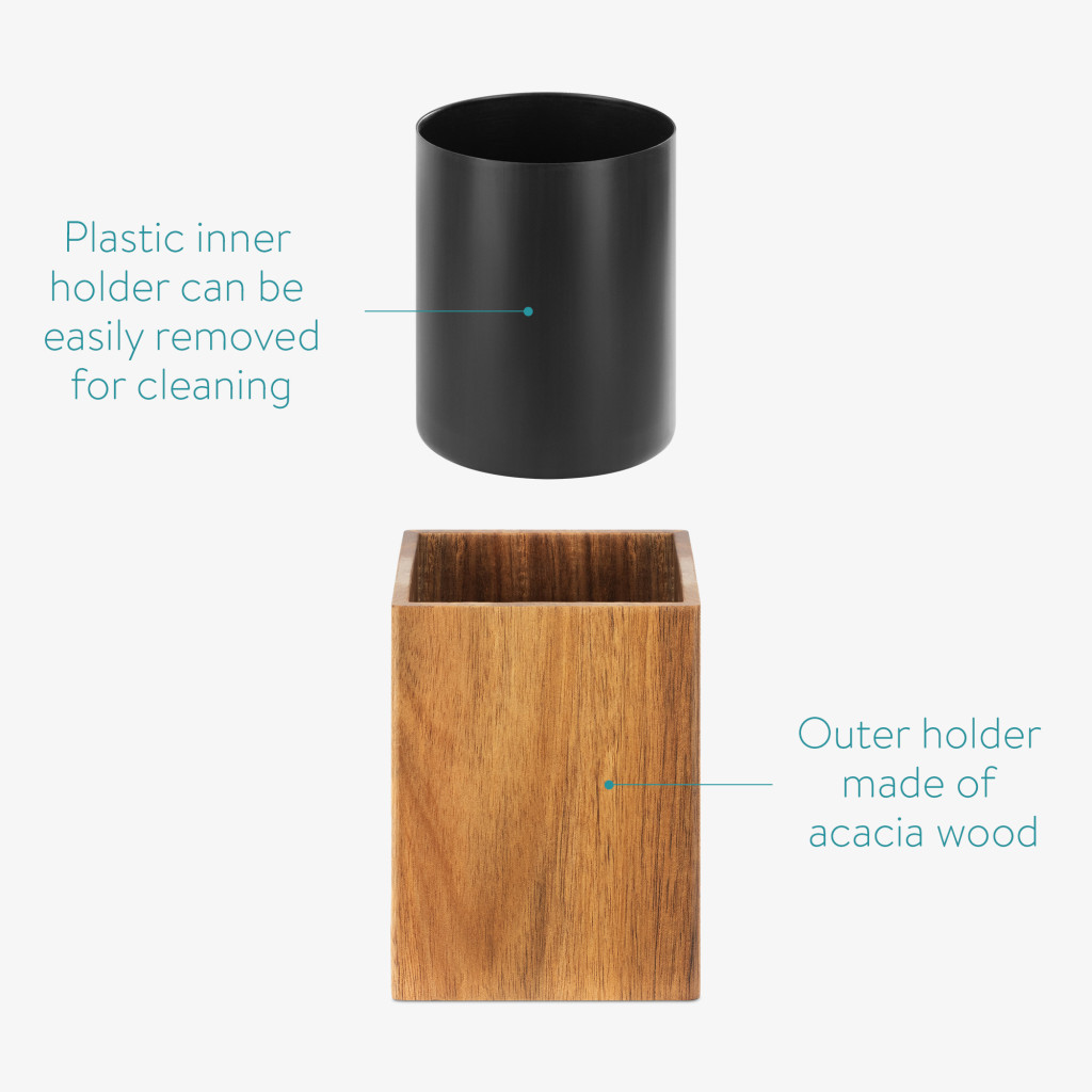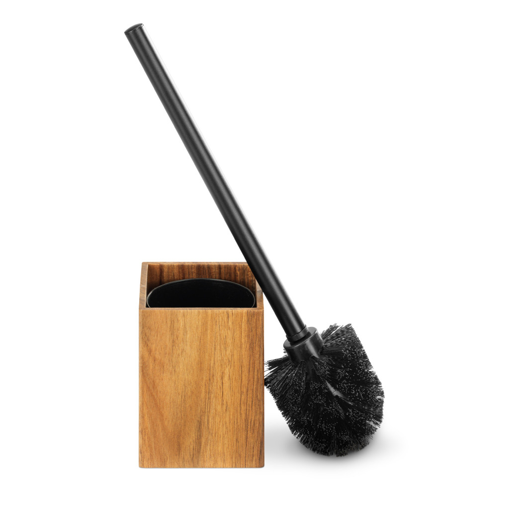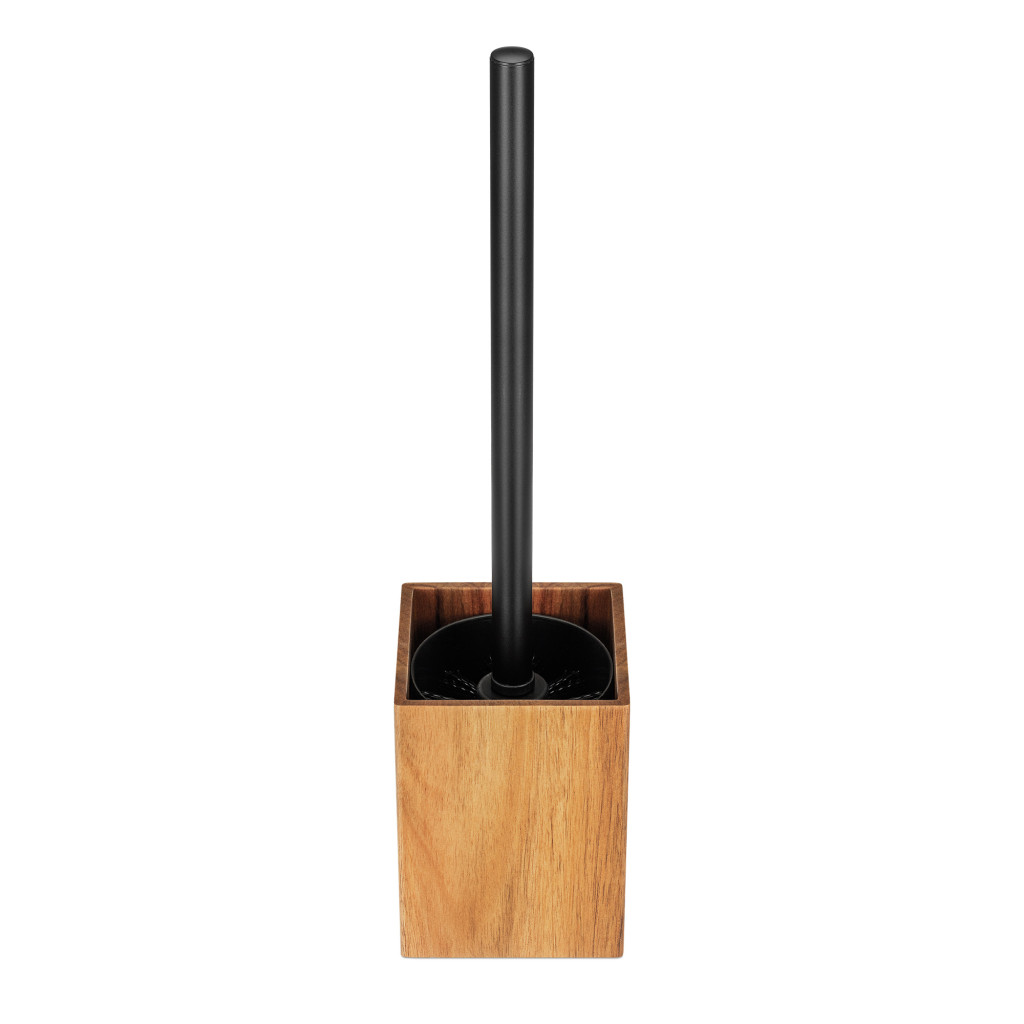 Set perie WC cu suport Navaris, lemn acacia, maner metal, 9x9x35.5 cm, maro natural, maro, lemn/metal