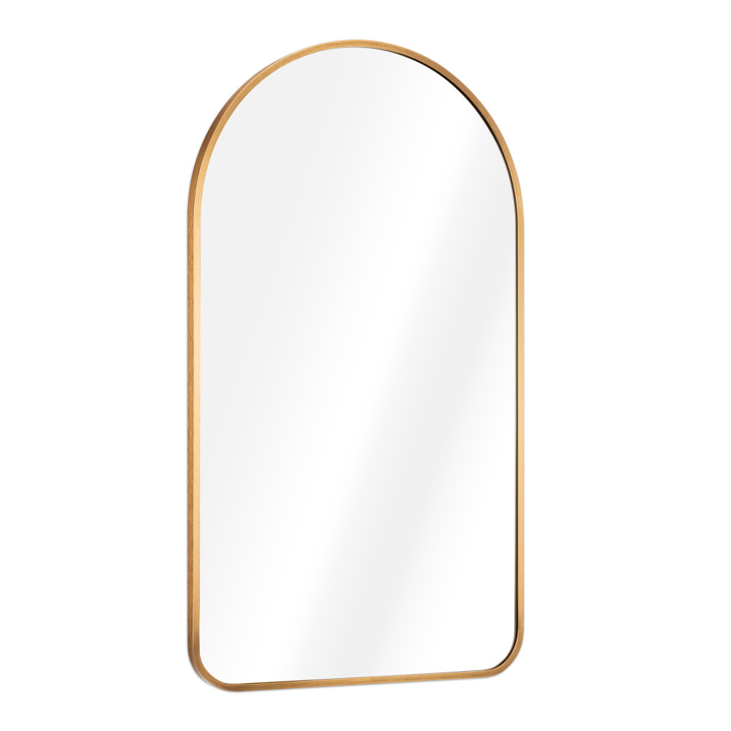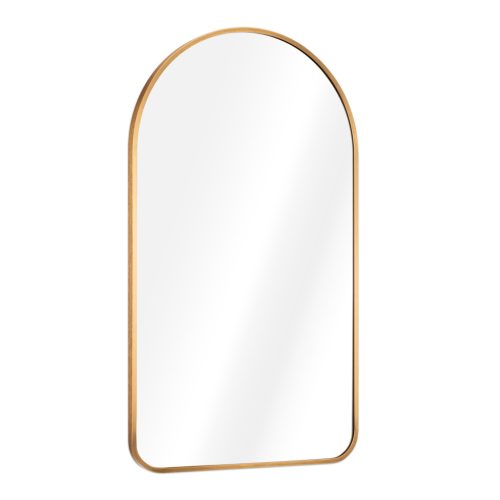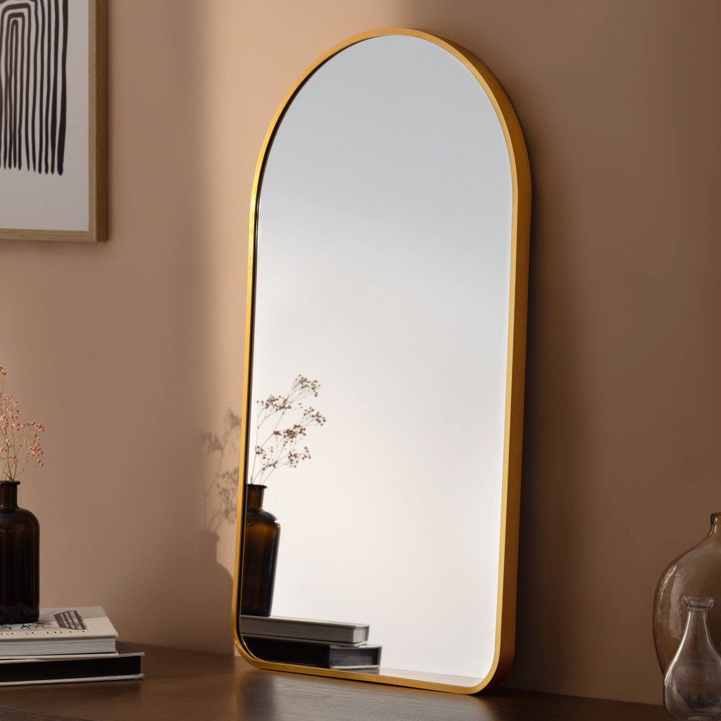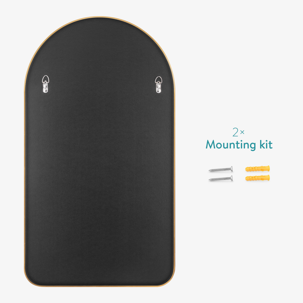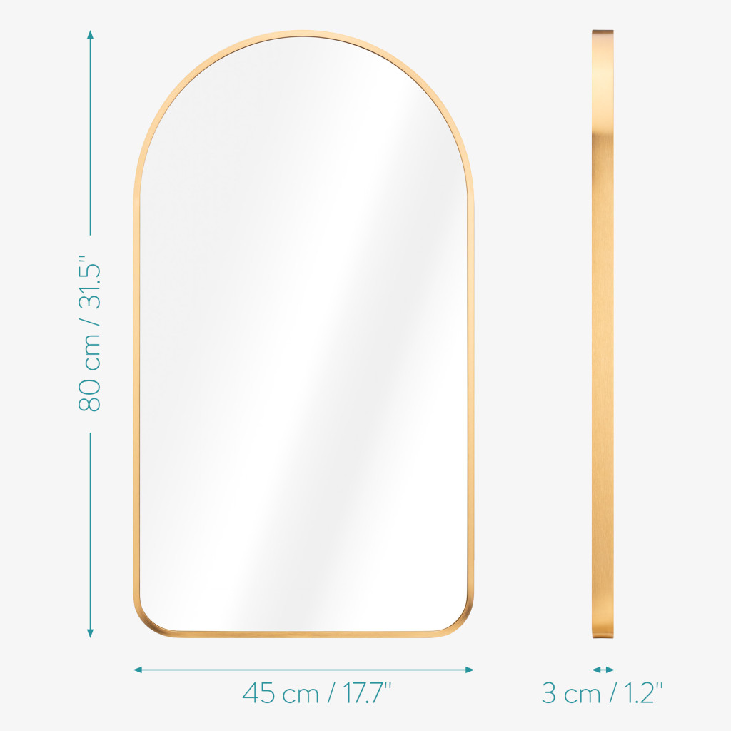 Oglinda de perete Navaris arcuita, 45x80 cm, montaj inclus, auriu, aluminiu/sticla