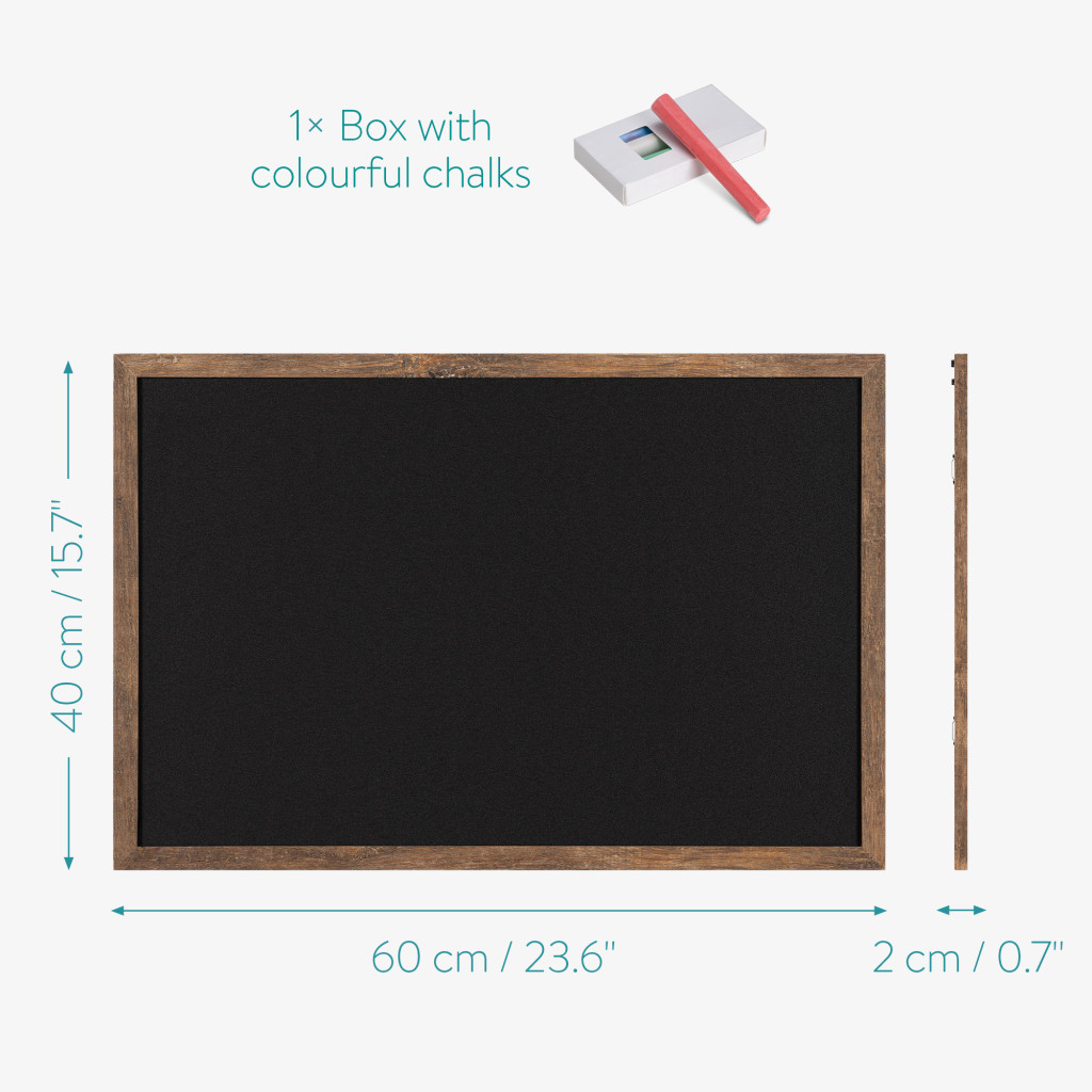 Tabla scolara Navaris cu rama MDF, 60x40 cm, montaj perete, 4 crete incluse, negru/natur, negru, MDF