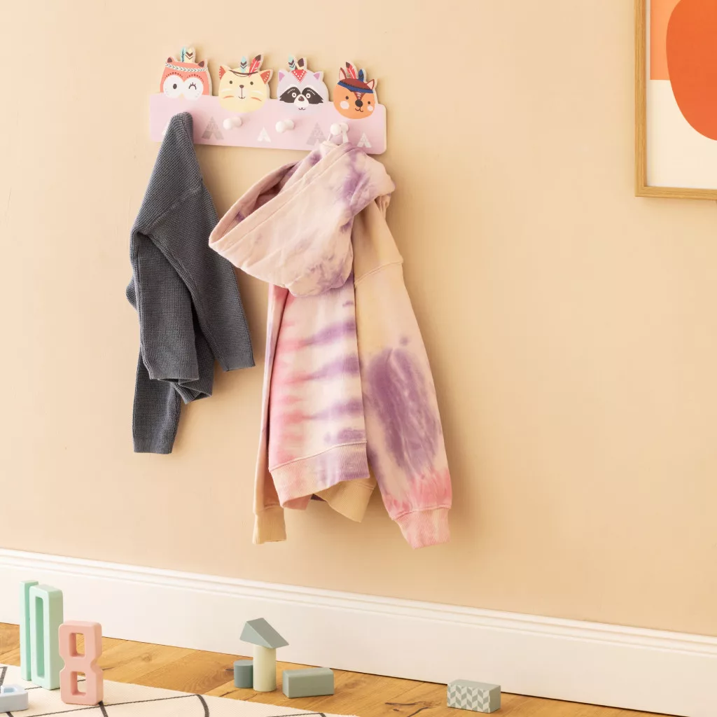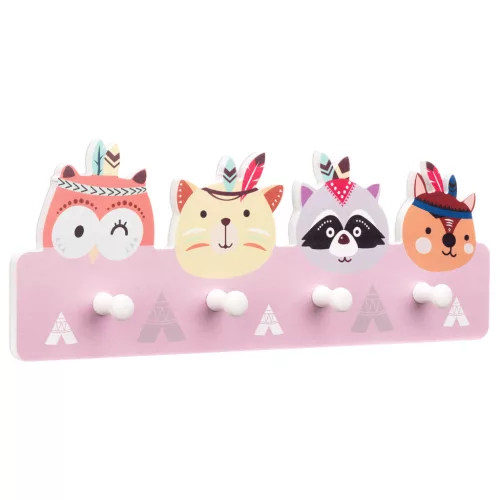 Cuier perete copii Navaris, 4 carlige, design animale, 40x14.8x0.9 cm, multicolor, lemn