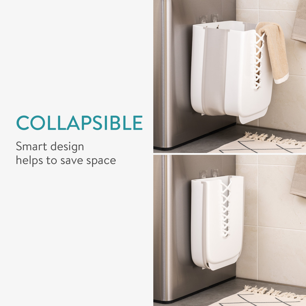 Cos rufe pliabil Navaris, 30 L, montaj pe perete, kit montaj inclus, alb, polipropilena/cauciuc