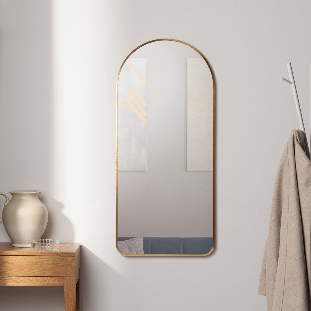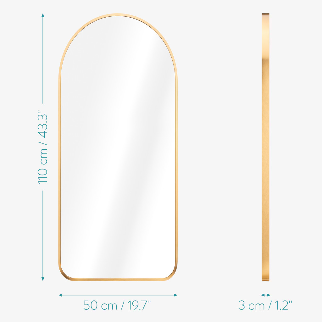 Oglinda de perete Navaris, arcuita full length, rama aluminiu, 110x50 cm, argintiu, aluminiu