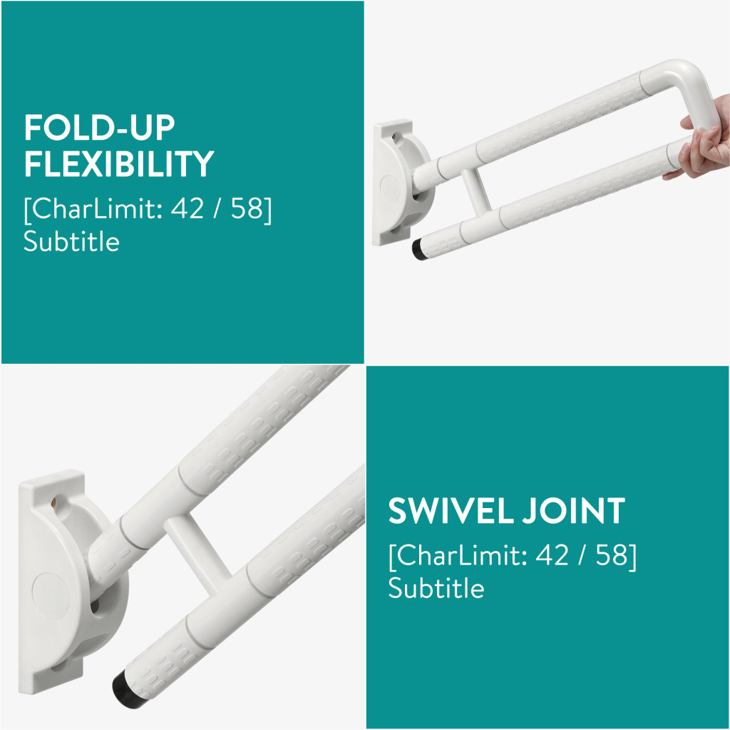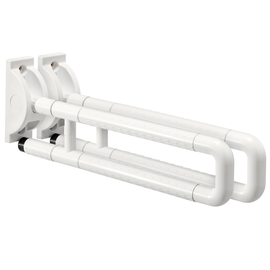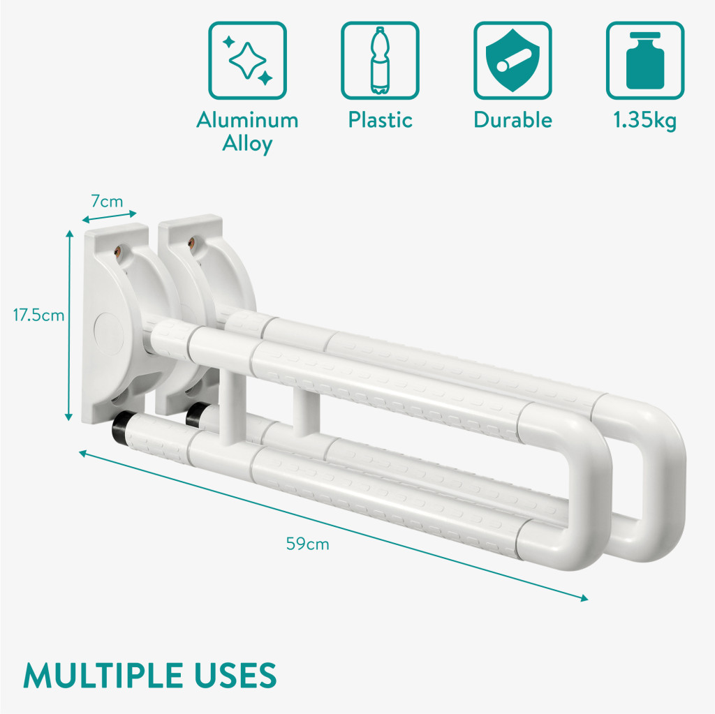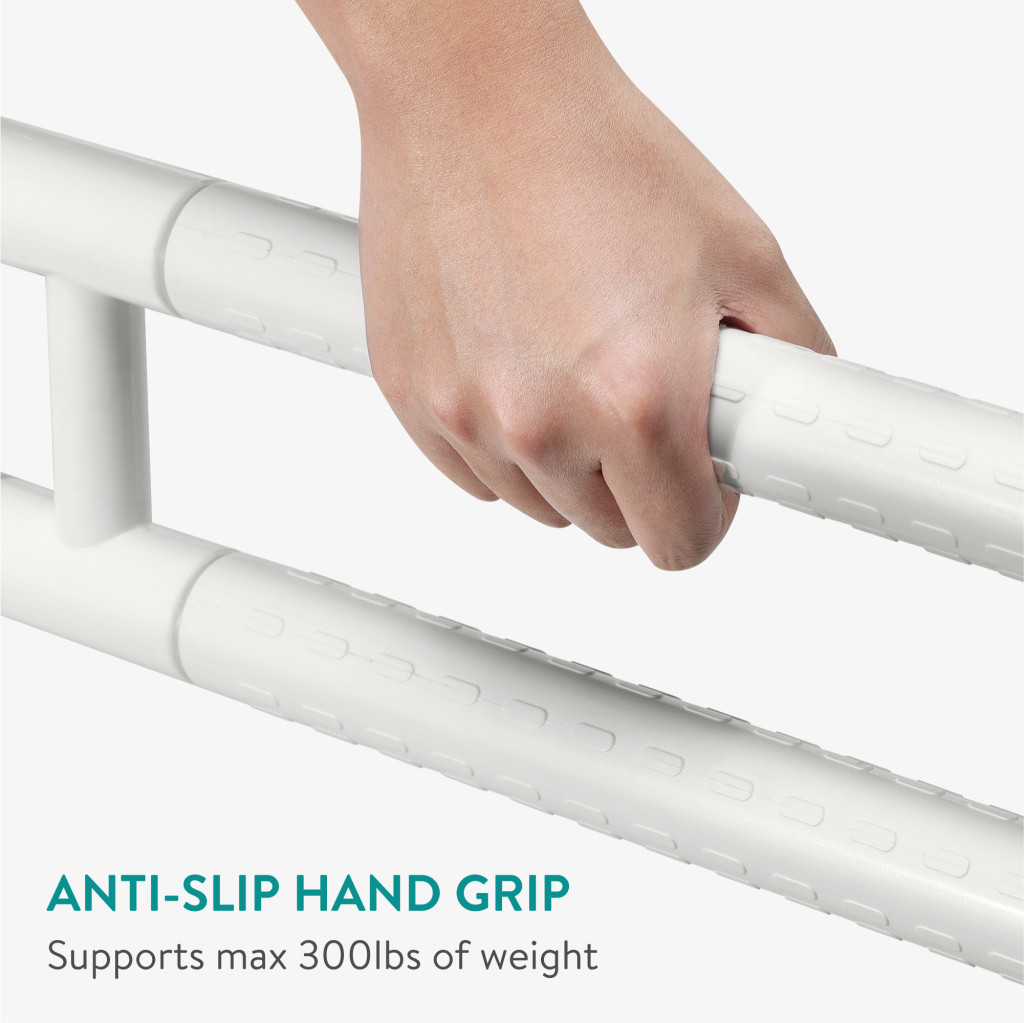 Set 2 bare sprijin toaleta Navaris, montaj pe perete, 59 cm, aderenta antialunecare, alb, plastic