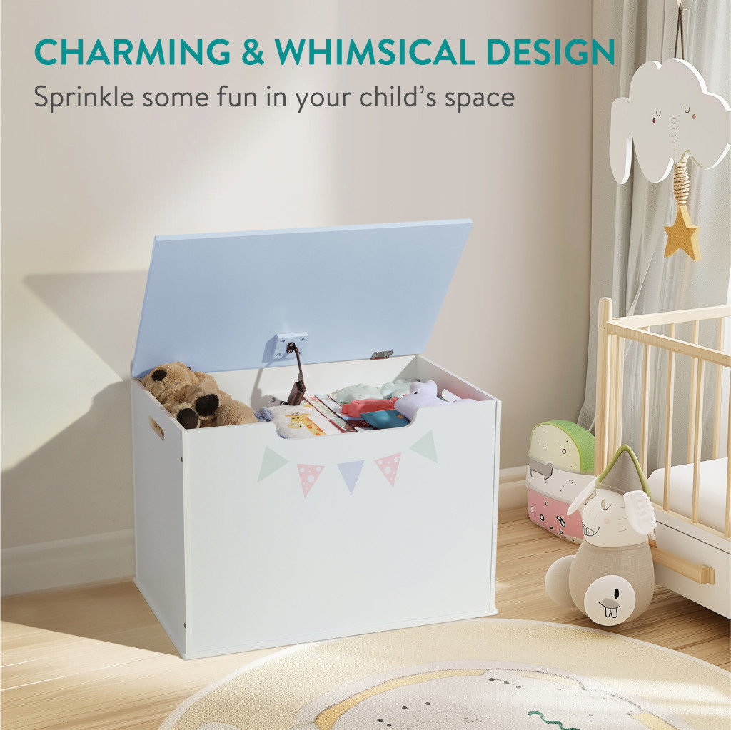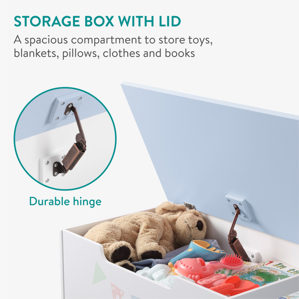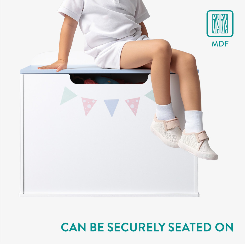 Cutie depozitare jucarii din lemn Navaris, 60x41x39 cm, banca pentru sezut, albastru, lemn