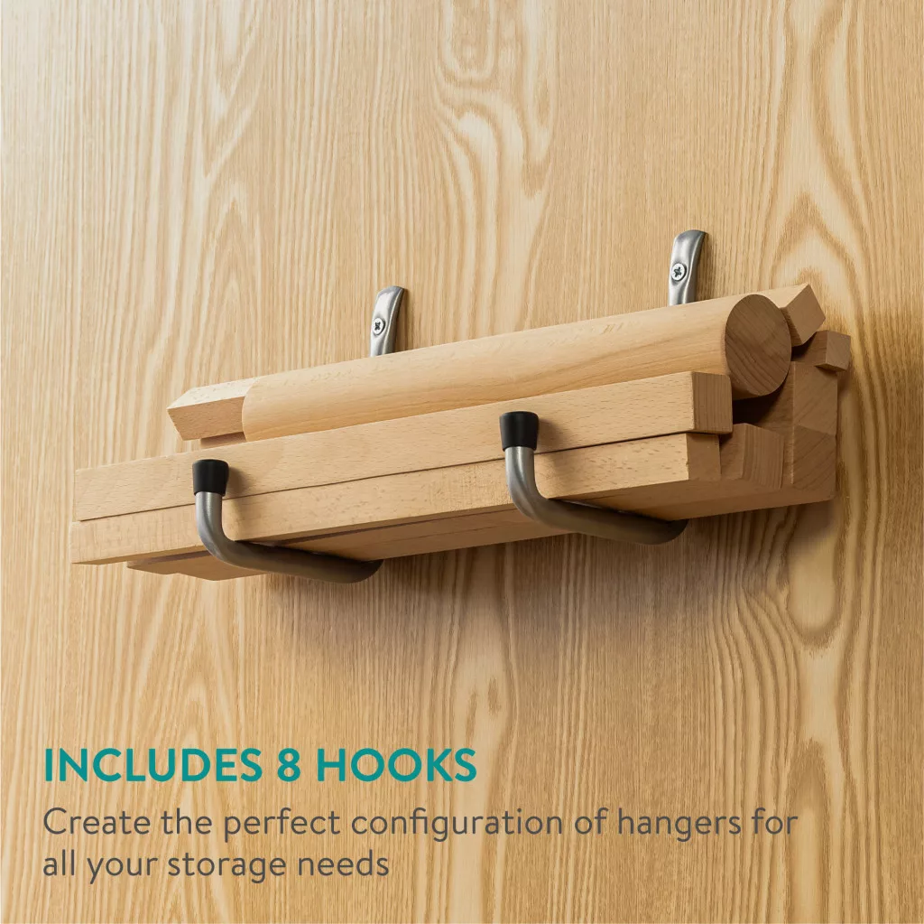 Set 8 carlige depozitare Navaris, tavan/perete, 64.95x15x11.5 cm, garaj, negru, otel