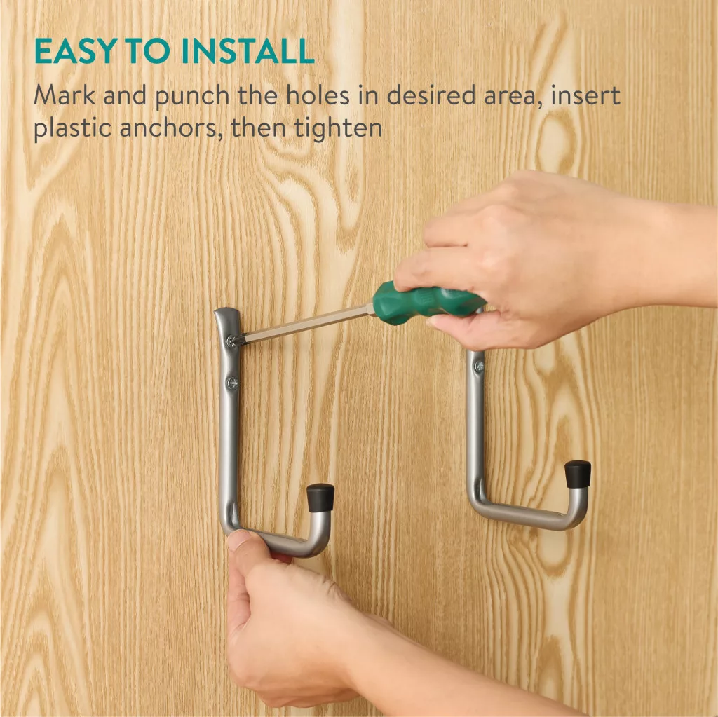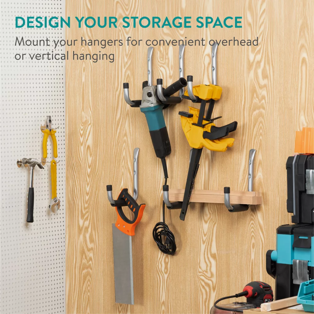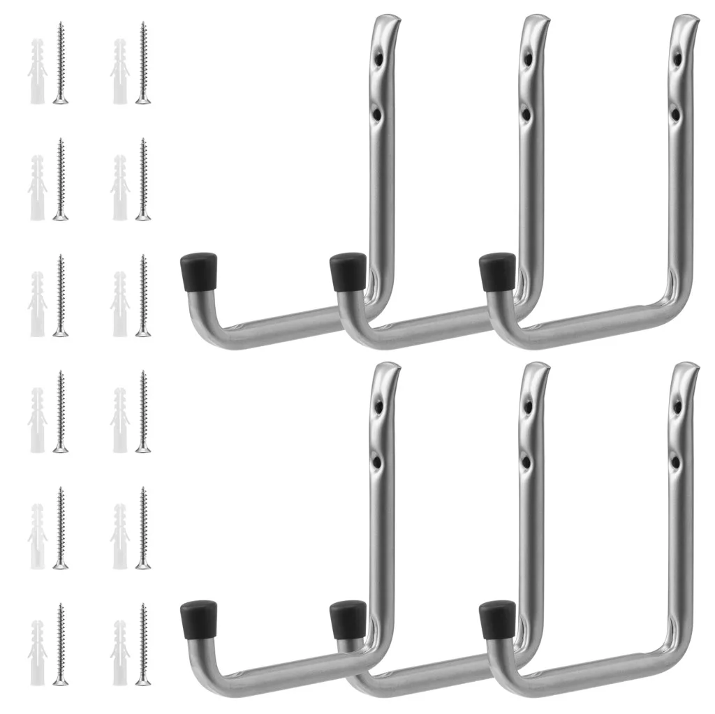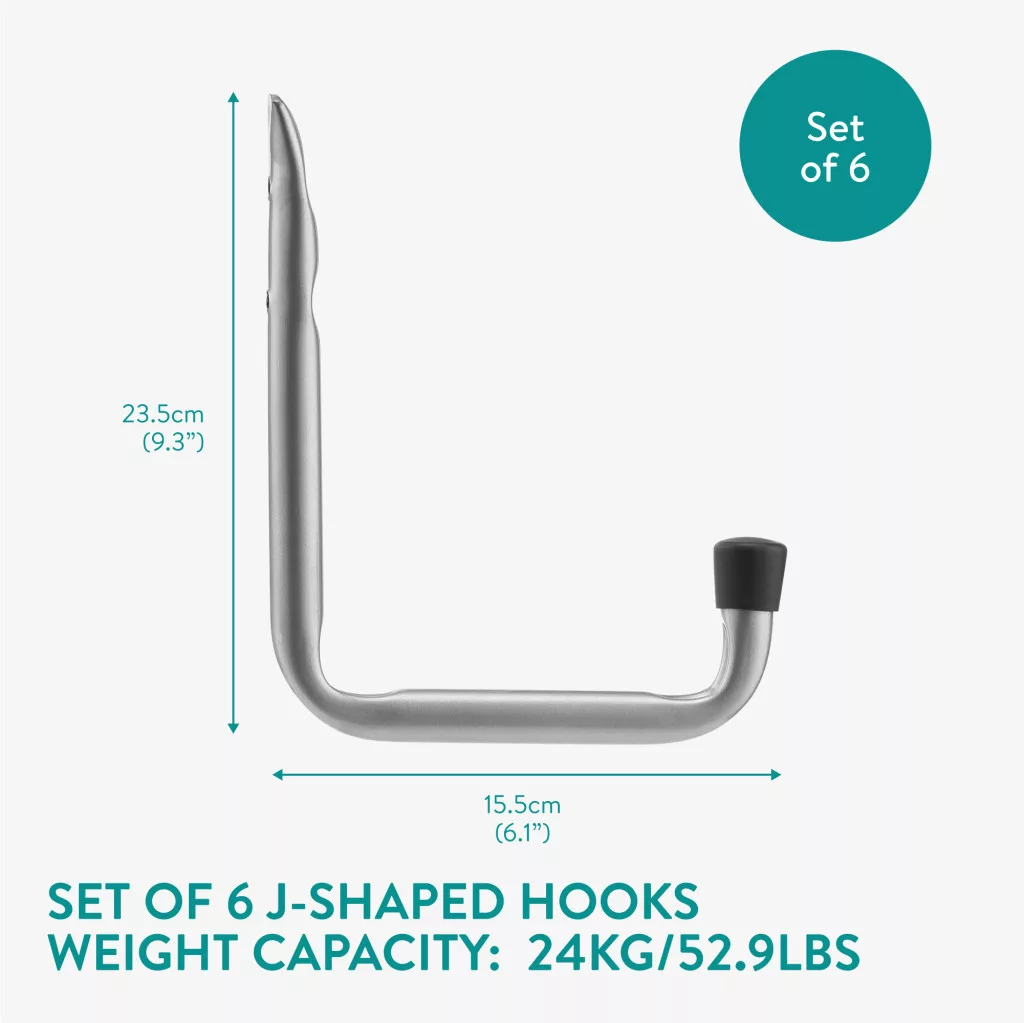 Set 6 carlige depozitare Navaris, 21.5x15.5 cm, tavan/perete, garaj, negru, otel