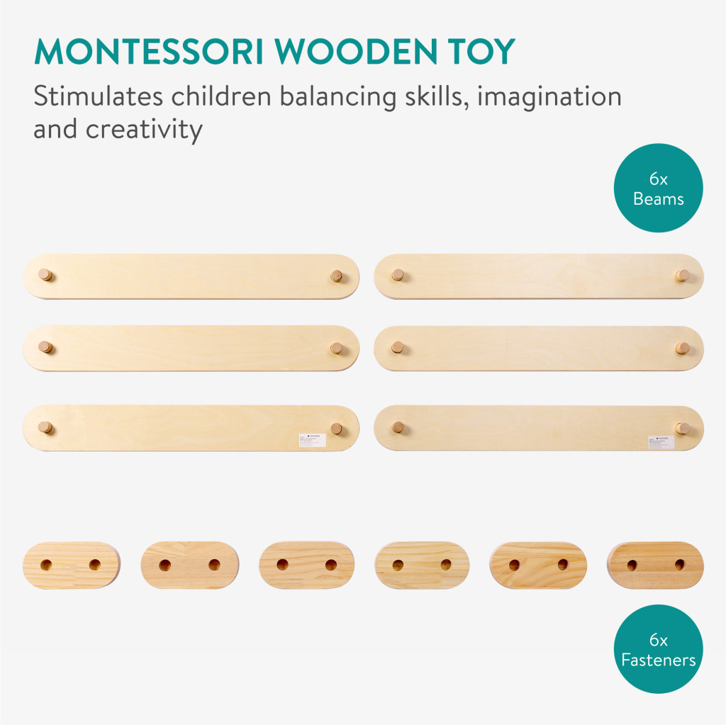 Bara de echilibru din lemn Navaris, 75x19.5x10.5 cm, joaca activa si coordonare, natur, maro, lemn