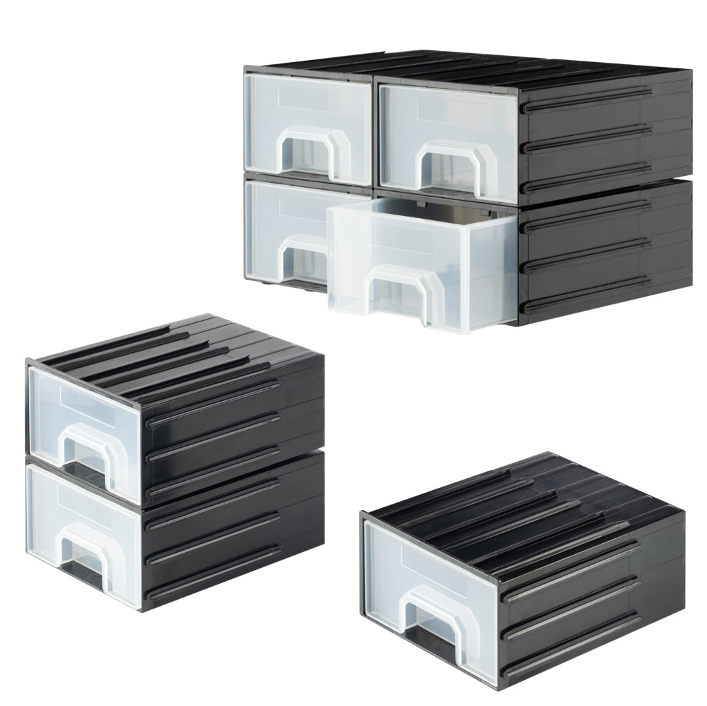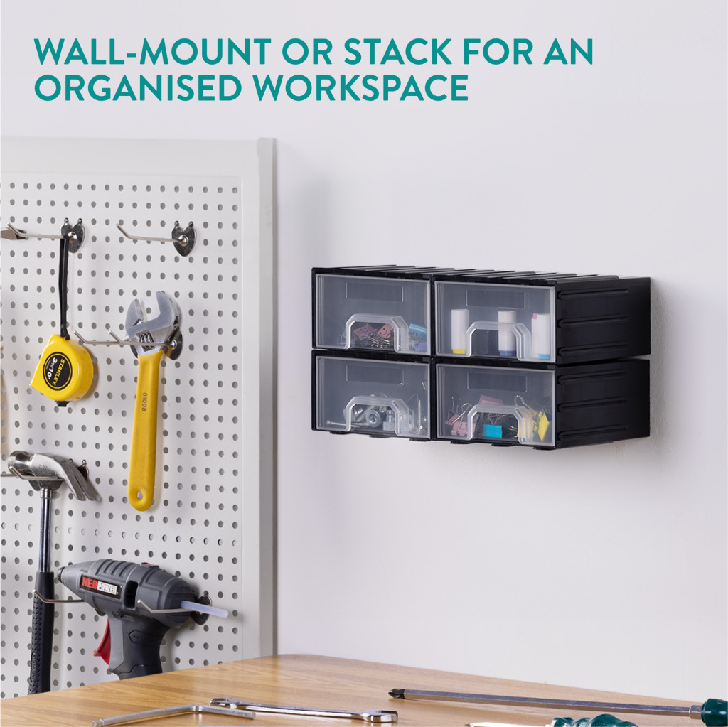 Cutie organizare Navaris cu 4 sertare interconectabile, 5.9x5.1x2.9 cm, montaj perete, gri, plastic