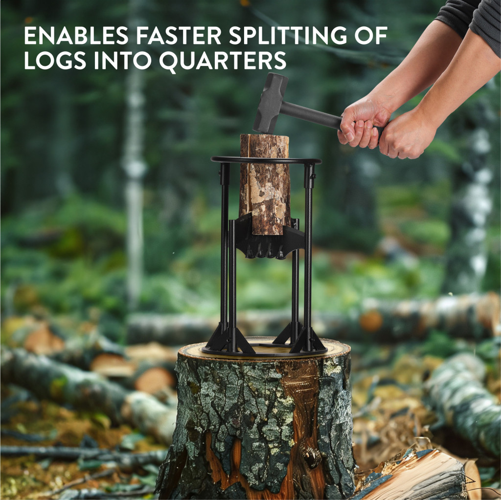 Set accesorii seminee Navaris, despicator lemne cu ciocan si carrier, 20x20x38 cm, maro, otel