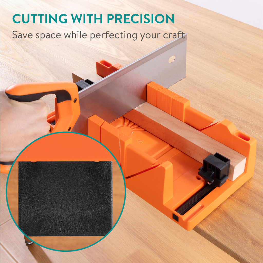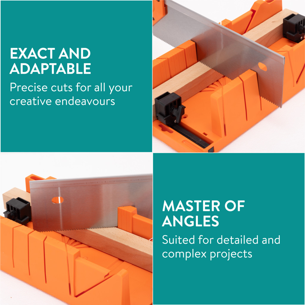 Set cutie de unghi Navaris si ferastrau de mana, 43 cm, taiere unghiuri 90/45/22, 5, negru, plastic