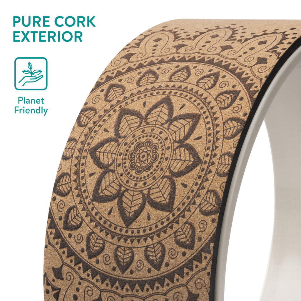 Roata yoga Navaris Cork, 33x13 cm, miez PP, exterior pluta, negru, polipropilena/pluta