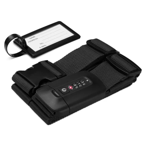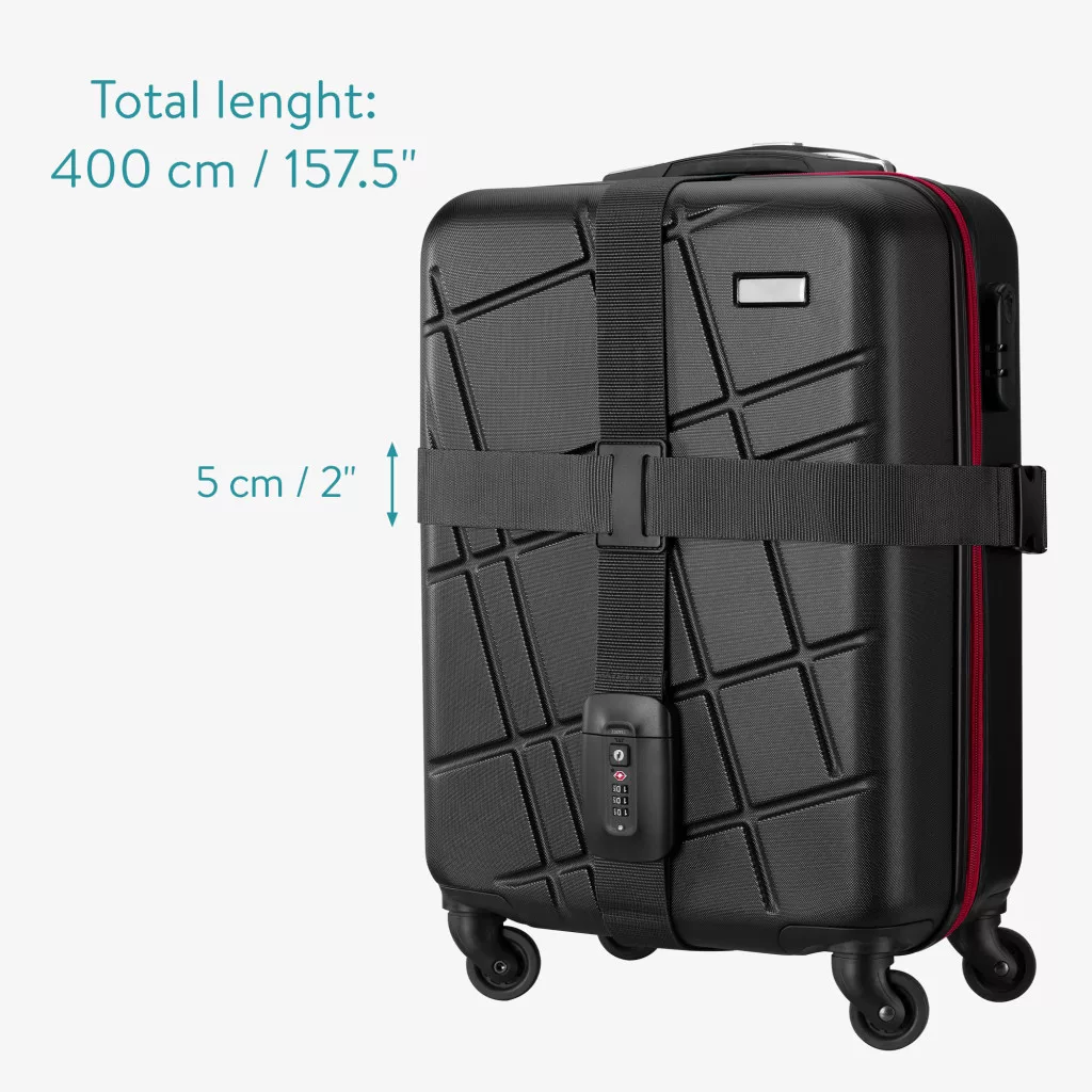 Ο σχεδιασμός σε σταυρό κρατάει σταθερά τη βαλίτσα, και το ρυθμιζόμενο μήκος έως 400 cm την καθιστά κατάλληλη για κάθε τύπο αποσκευής. Περιλαμβάνει εύκολα συμπληρώσιμη ετικέτα κατόχου και ζυγίζει μόνο 270 g, χωρίς να προσθέτει περιττό όγκο.