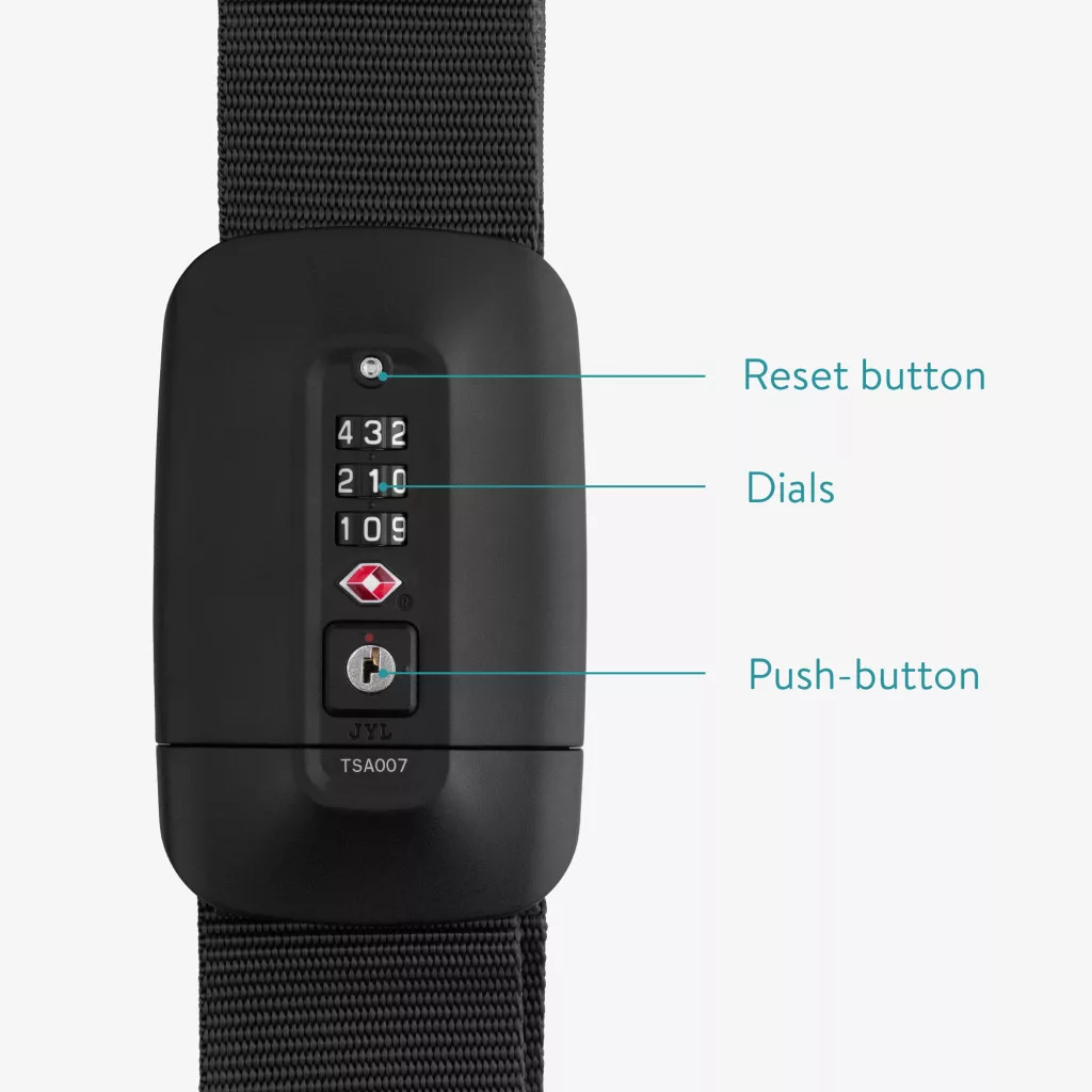Η ζώνη ασφαλείας βαλίτσας Navaris με κλείδωμα TSA εξασφαλίζει την προστασία των αποσκευών σας, επιτρέποντάς σας να ορίσετε προσωπικό κωδικό γνωστό μόνο σε εσάς, ενώ το προσωπικό ασφαλείας του αεροδρομίου μπορεί να ανοίξει τη βαλίτσα χωρίς να την καταστρέψει, όταν χρειάζεται.