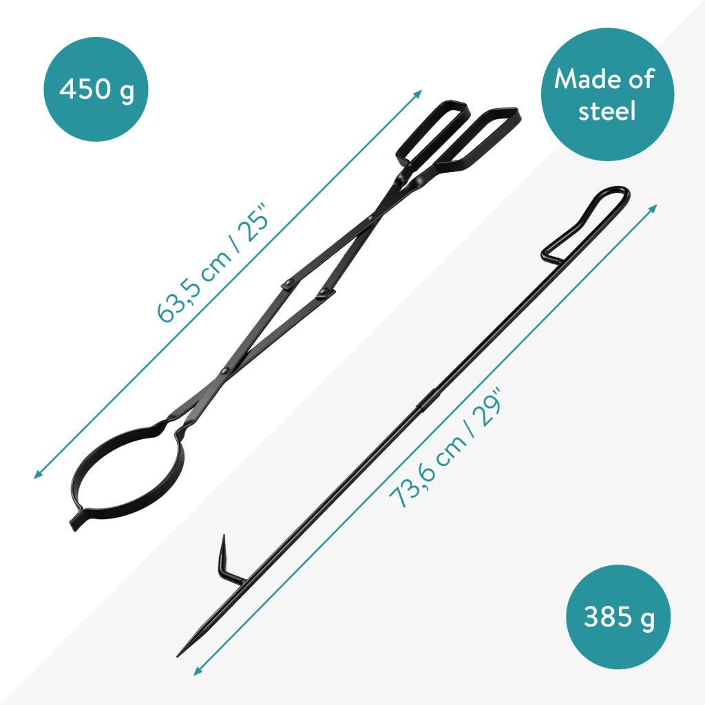 Set cleste si poker pentru semineu Navaris, 63, 5 cm si 73, 6 cm, negru, otel