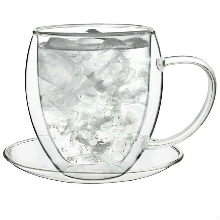 Cana termica XXL Creano, 400 ml, sticla borosilicata, perete dublu, cu farfurioara