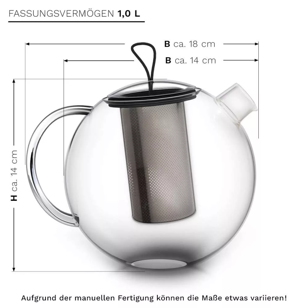 Ceainic din sticla Creano Jumbo, 1 L, cu infuzor din inox, capac, sistem all-in-one