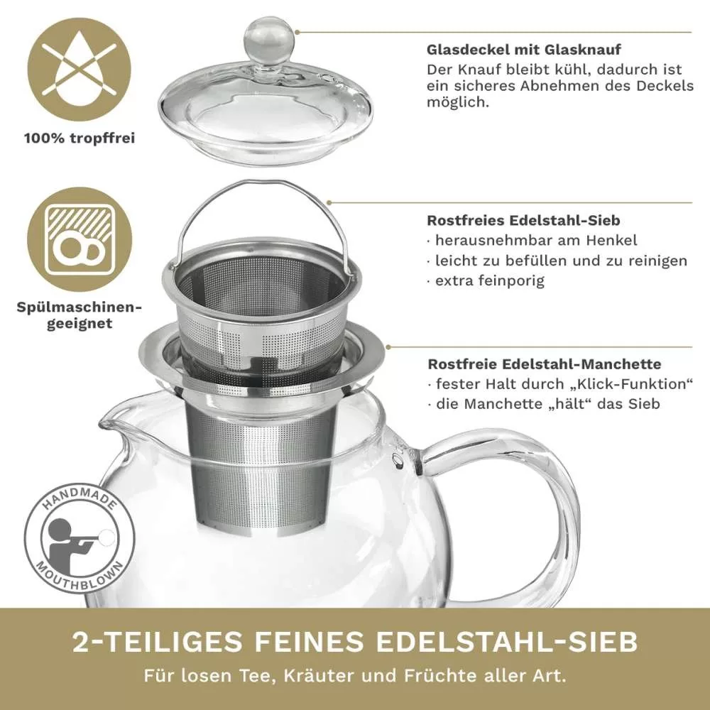 Ceainic din sticla Creano All-in-One, 0,85 L, cu infuzor din inox si capac, anti-picurare