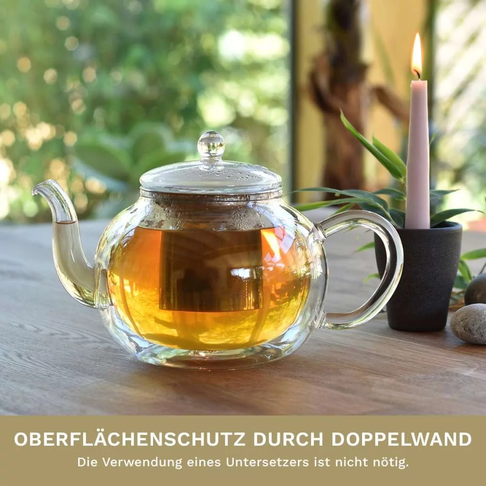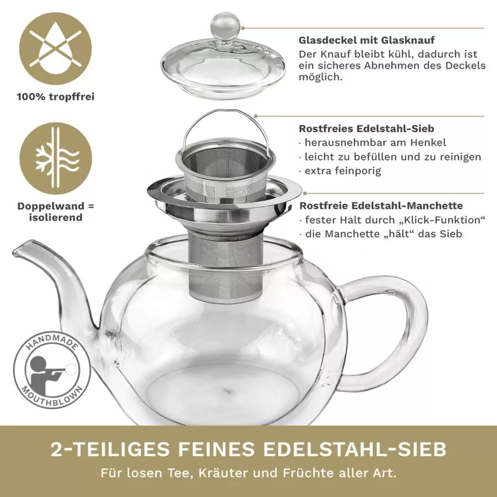 Ceainic termic Creano, 1,2 L, sticla perete dublu, cu infuzor din inox, anti-picurare