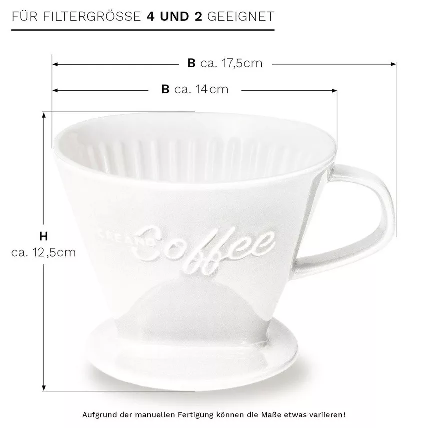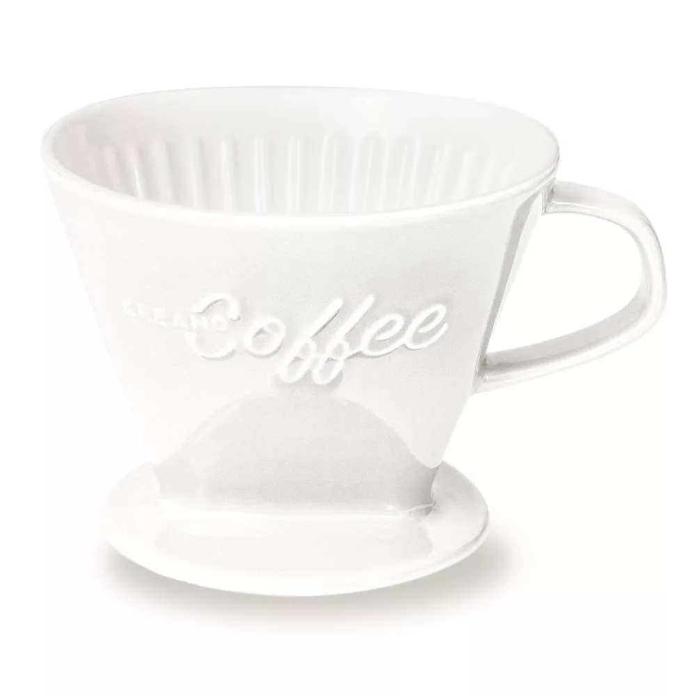 Filtru cafea Creano din portelan, marimea 4, pentru filtre 1x4, baza stabila, alb