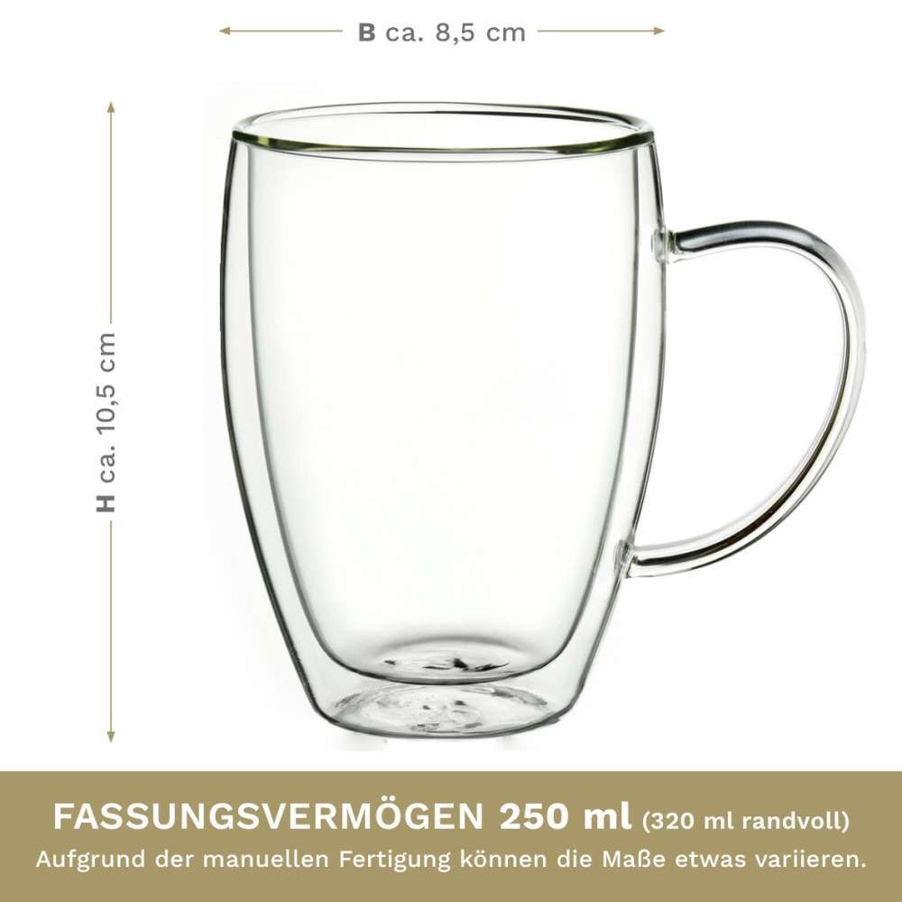 Set 4 cani termice Creano cu maner, 250 ml, sticla borosilicata, perete dublu