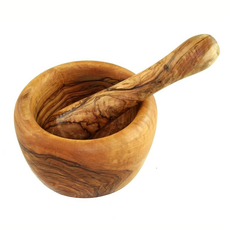 Το γουδί από ξύλο ελιάς συνδυάζει λειτουργικότητα και αισθητική. Είναι κατάλληλο όταν θέλεις να συνθλίβεις και να αναμειγνύεις υλικά για πιο πλούσια υφή και περισσότερο έλεγχο στην παρασκευή.
