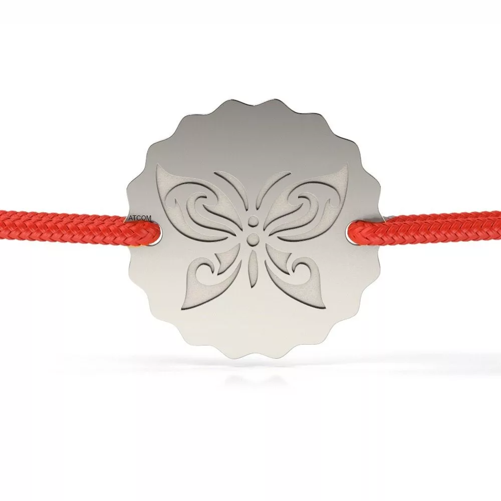 Το ασημένιο βραχιόλι με κόκκινο κορδόνι, μοντέλο με εφέ πεταλούδας είναι ένα λεπτό κόσμημα που φέρνει στο προσκήνιο τη φυσική ομορφιά και την απλότητα του σχεδίου. Κατασκευασμένο από υψηλής ποιότητας ασήμι 925, αυτό το βραχιόλι είναι σύμβολο χάρης και κομψότητας. Το μενταγιόν των 12 χλστ. είναι ένα κεντρικό στοιχείο που αντανακλά μια εξελιγμένη τεχνική επεξεργασίας, που μιμείται τα φτερά μιας πεταλούδας. Χωρίς πολύτιμους λίθους, το βραχιόλι βασίζεται στην αγνή ομορφιά του ασημιού και το εφέ "πεταλούδα" προσθέτει μια πινελιά φινέτσας και φινέτσας.