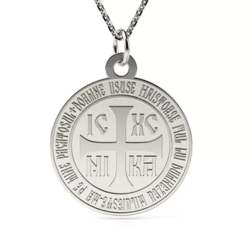 Το ασημένιο κρεμαστό κολιέ της Ορθόδοξης Προσευχής είναι ένα κόσμημα με βαθιά θρησκευτική σημασία, εμπνευσμένο από τις Ορθόδοξες παραδόσεις. Κατασκευασμένη από ασήμι 925, αυτή η αλυσίδα φιλοξενεί ένα μενταγιόν με θρησκευτικά σύμβολα, καθιστώντας την ένα τέλειο δώρο για όσους θέλουν να φορέσουν ένα κομμάτι ψυχής που αντανακλά την πίστη και την πνευματικότητα. Το μενταγιόν έχει διάμετρο 15 mm και η αλυσίδα 45 cm εφαρμόζει τέλεια γύρω από το λαιμό, καθιστώντας εύκολη τη χρήση τόσο στην καθημερινή ζωή όσο και σε σημαντικές θρησκευτικές εκδηλώσεις.