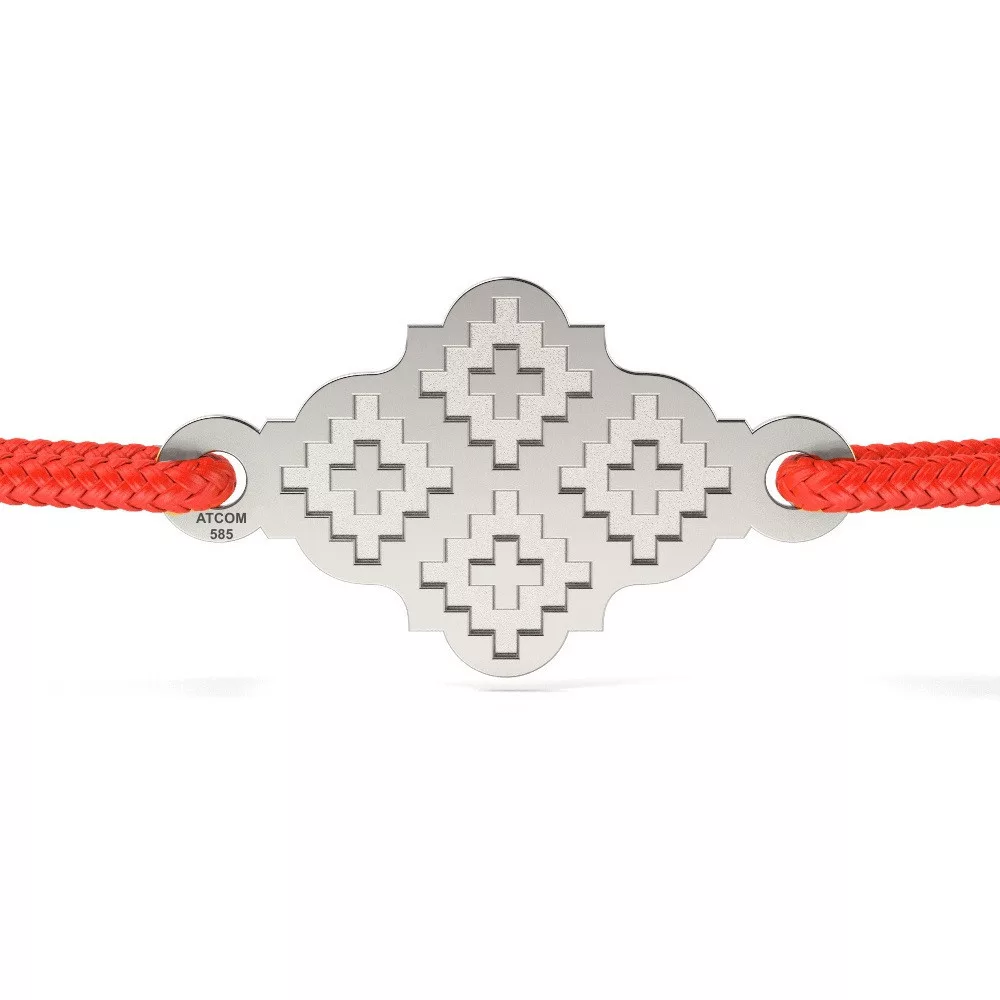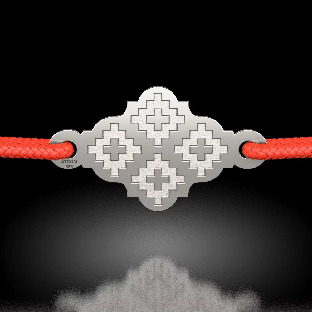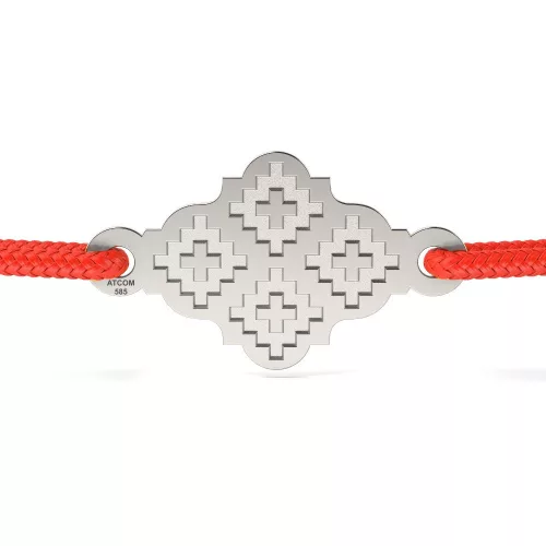 Το βραχιόλι συνδυάζει τη φυσική ομορφιά του ασημιού με φολκλορικά μοτίβα, αποτελώντας ένα δώρο που παραπέμπει στις παραδόσεις της καρδιάς της Τρανσυλβανίας. Τα παραδοσιακά μοτίβα αποτελούν έμβλημα της περιοχής και αυτό το βραχιόλι τα φέρνει στο προσκήνιο με κομψό και διακριτικό τρόπο. Ο απλός και κομψός σχεδιασμός του συμπληρώνεται από το ρυθμιζόμενο κορδόνι, το οποίο επιτρέπει στο βραχιόλι να προσαρμόζεται σε κάθε καρπό. Το βάρος μόλις 0,5 g εξασφαλίζει άνετη χρήση καθ' όλη τη διάρκεια της ημέρας και η διάμετρος 12 mm το καθιστά ιδανικό για κάθε μέγεθος καρπού.