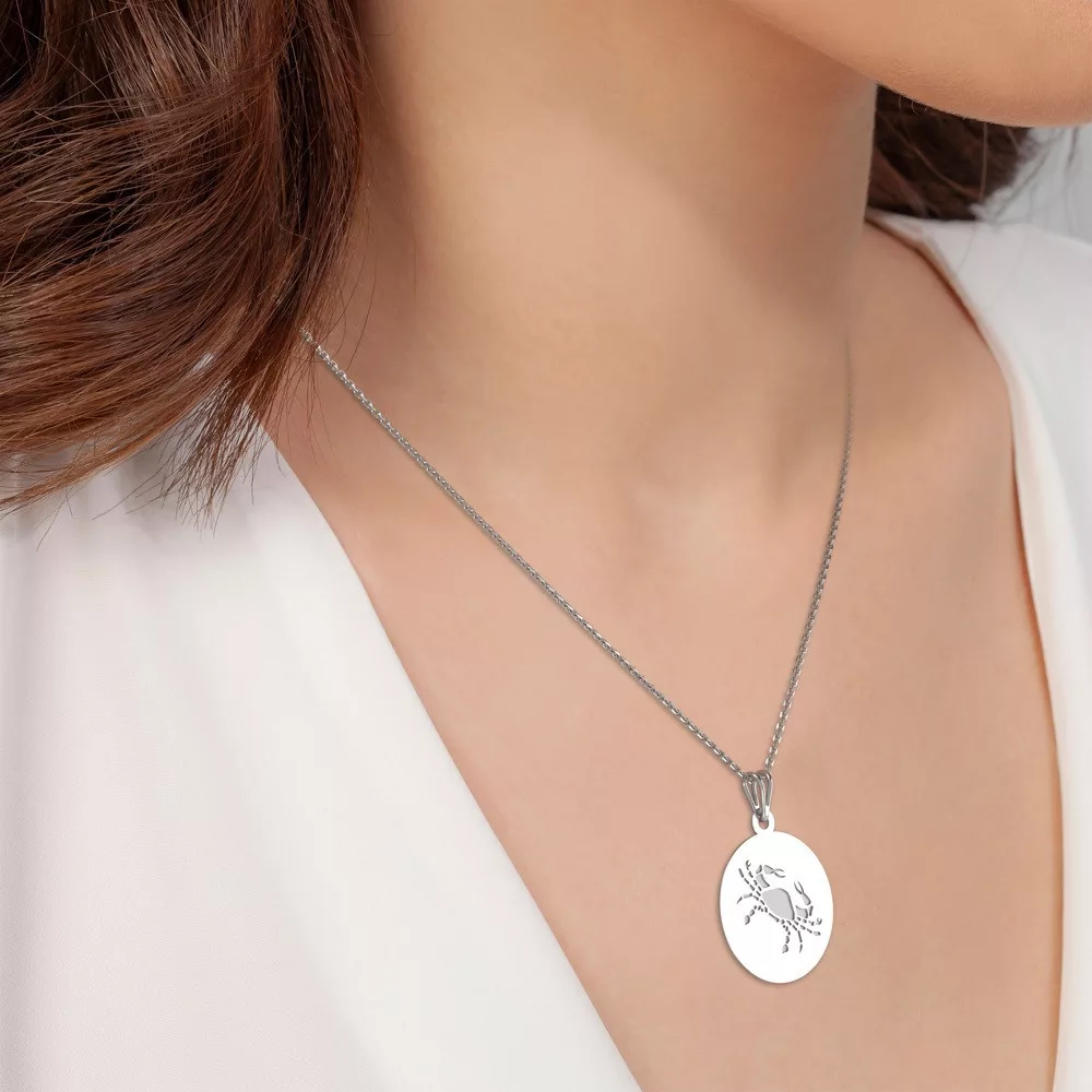 Το ασημένιο κρεμαστό κολιέ Cancer είναι ένα κόσμημα εμπνευσμένο από το ζώδιο του Καρκίνου, το οποίο είναι γνωστό για τα ιδιαίτερα χαρακτηριστικά του, την ευαισθησία, την ενσυναίσθηση και την επιθυμία να προστατεύει τα αγαπημένα του πρόσωπα. Αυτό το λεπτό κόσμημα, από ασήμι 925, είναι μια ιδανική επιλογή για γυναίκες που θέλουν να εκφράσουν τη σχέση τους με αυτό το ζώδιο ή απλά να εκτιμήσουν την ομορφιά του κοσμήματος με προσωπικό νόημα. Το μενταγιόν είναι απλό και κομψό, με διάμετρο 15 mm και η αλυσίδα 45 cm είναι ιδανική για καθημερινή χρήση ή ειδικές περιστάσεις.