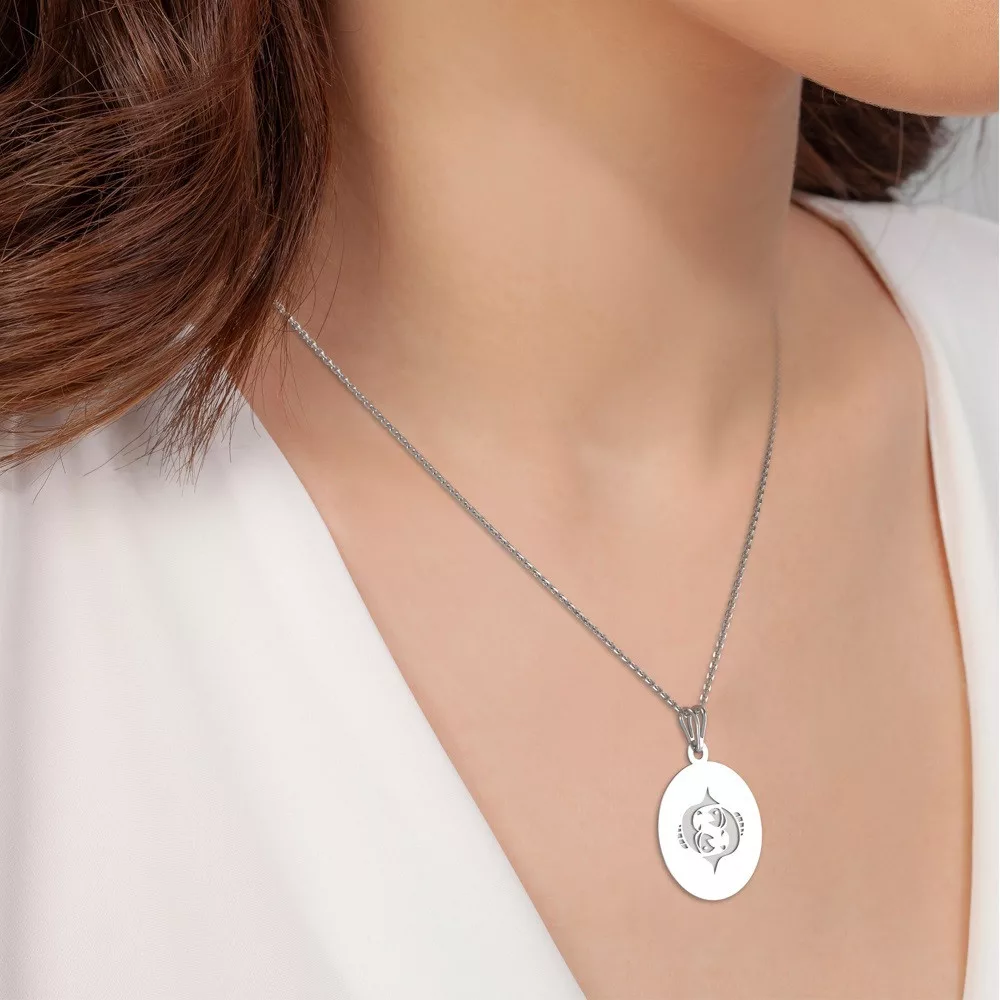 Το μέγεθος του μενταγιόν είναι 15 mm και η αλυσίδα μήκους 45 cm, γεγονός που το καθιστά κατάλληλο για εύκολη χρήση σε κάθε περίσταση. Είτε πρόκειται για μια συνηθισμένη μέρα είτε για μια ειδική περίσταση, αυτό το κολιέ θα προσθέσει μια πινελιά κομψότητας και φινέτσας στο ντύσιμό σας. Το μενταγιόν δεν περιέχει πέτρες, κάτι που του δίνει μια καθαρή και απλή εμφάνιση, αναδεικνύοντας την ομορφιά του ασημί. Το γυαλιστερό φινίρισμα του ασημιού 925 δίνει στα κοσμήματα μια διακριτική λάμψη, ιδανική για να προσθέσετε μια πινελιά πολυτέλειας σε κάθε ντύσιμο.