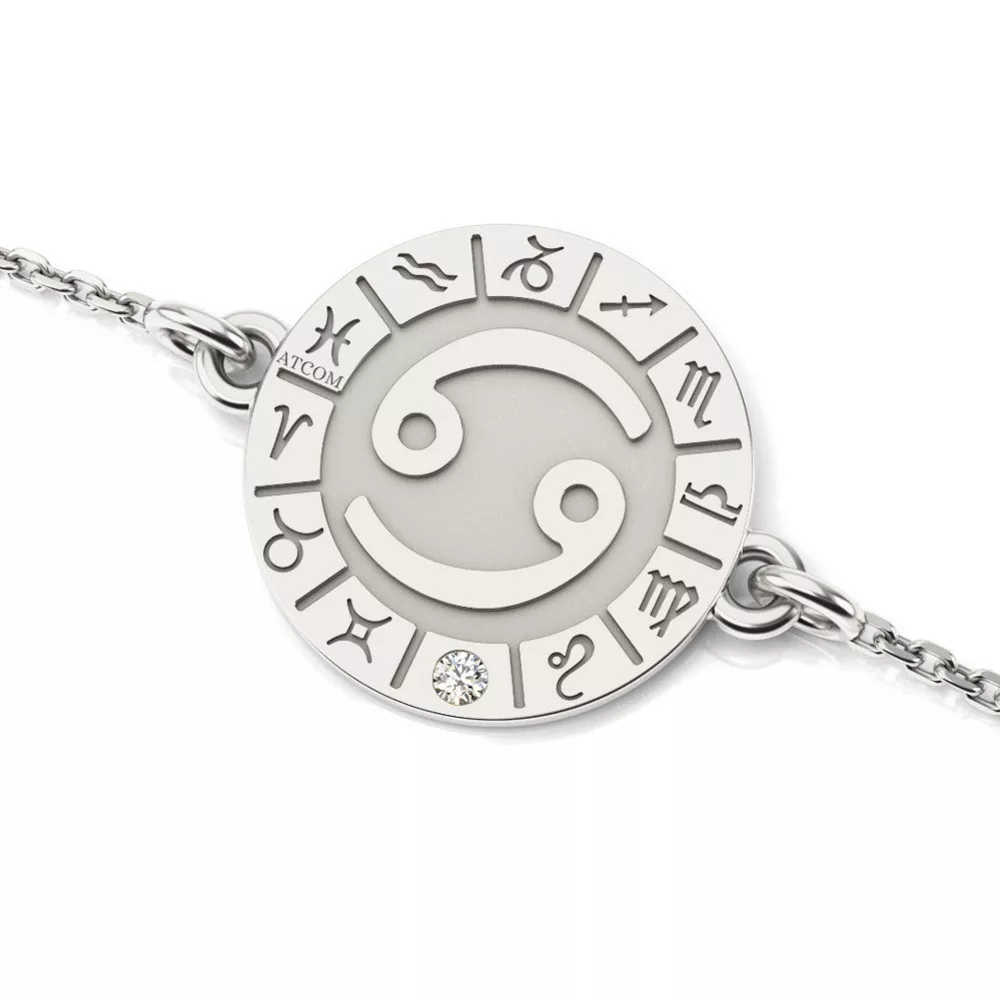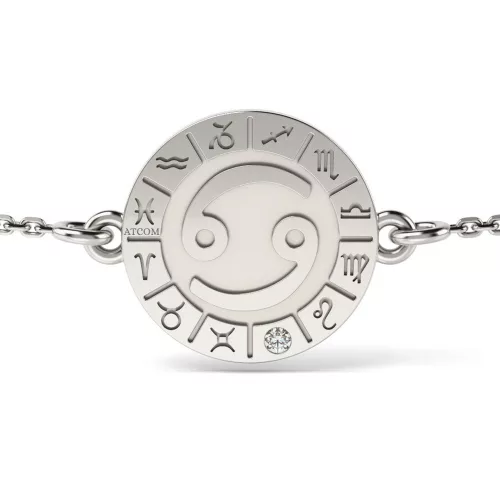 Το κεντρικό στοιχείο του βραχιολιού είναι το ζωδιακό σύμβολο του Καρκίνου, το οποίο προσθέτει ένα στρώμα εξατομικευμένου νοήματος για άτομα που θέλουν να εκφράσουν τη συγγένειά τους με αυτό το ζώδιο. Τα κρύσταλλα στο βραχιόλι συμπληρώνουν τέλεια το σχέδιο, δίνοντάς του μια διακριτική λάμψη και τέλεια κομψότητα. Μπορεί να φορεθεί μόνο του για μια απλή και εκλεπτυσμένη εμφάνιση ή να συνδυαστεί με άλλα κοσμήματα για πιο εντυπωσιακό αποτέλεσμα.
